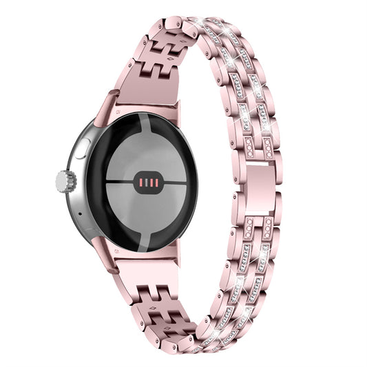 2 Rows Rhinestone Decor Watch Band for Google Pixel Watch, 5 Beads Metal Wrist Strap Replacement
