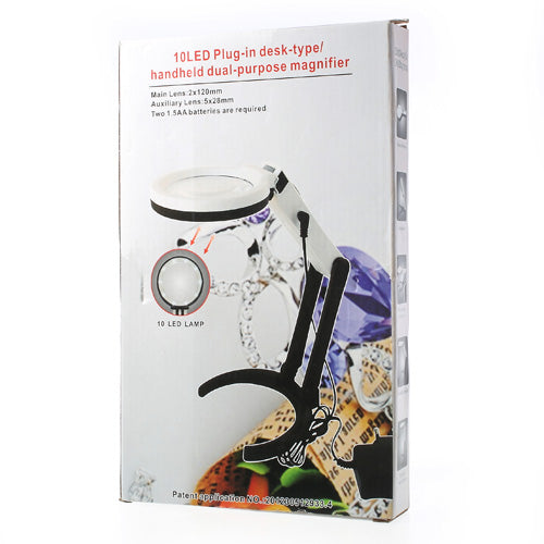 2 x 120mm Foldable Desk-type Handheld 10 LED Lighted Lamp Magnifier