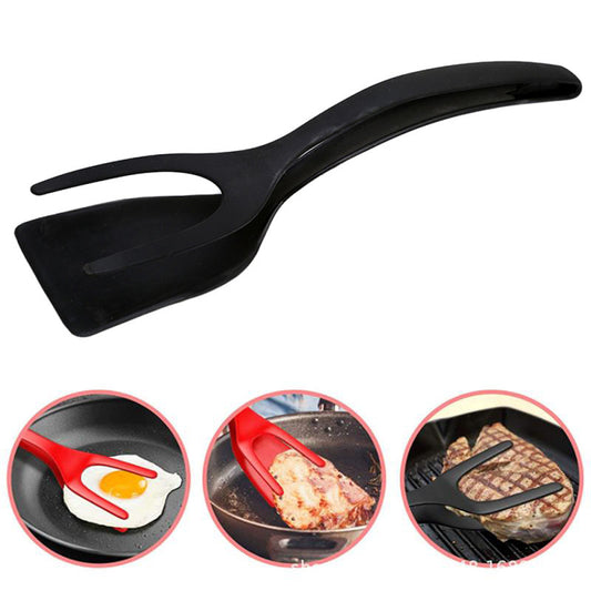 2-in-1 Clip Flip Spatula Fried Egg Steak Tongs Pancake Omelet Clamp Cooking Tongs Kitchen Tool (No FDA, BPA-free)