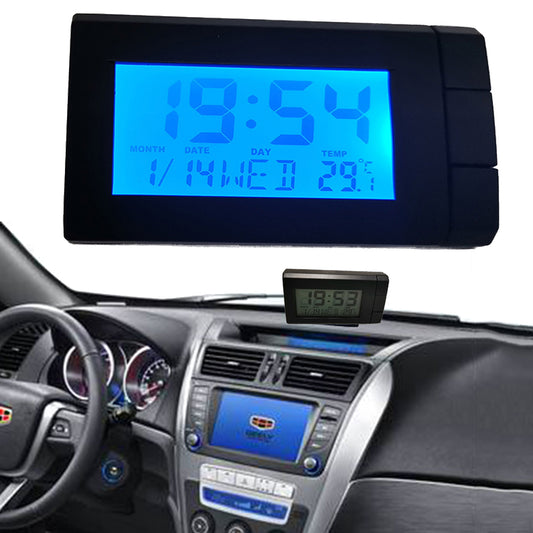 2-in-1 Blue Backlight Car LCD Digital Clock Temperature Display Thermometer Electronic Clock Car Ornament