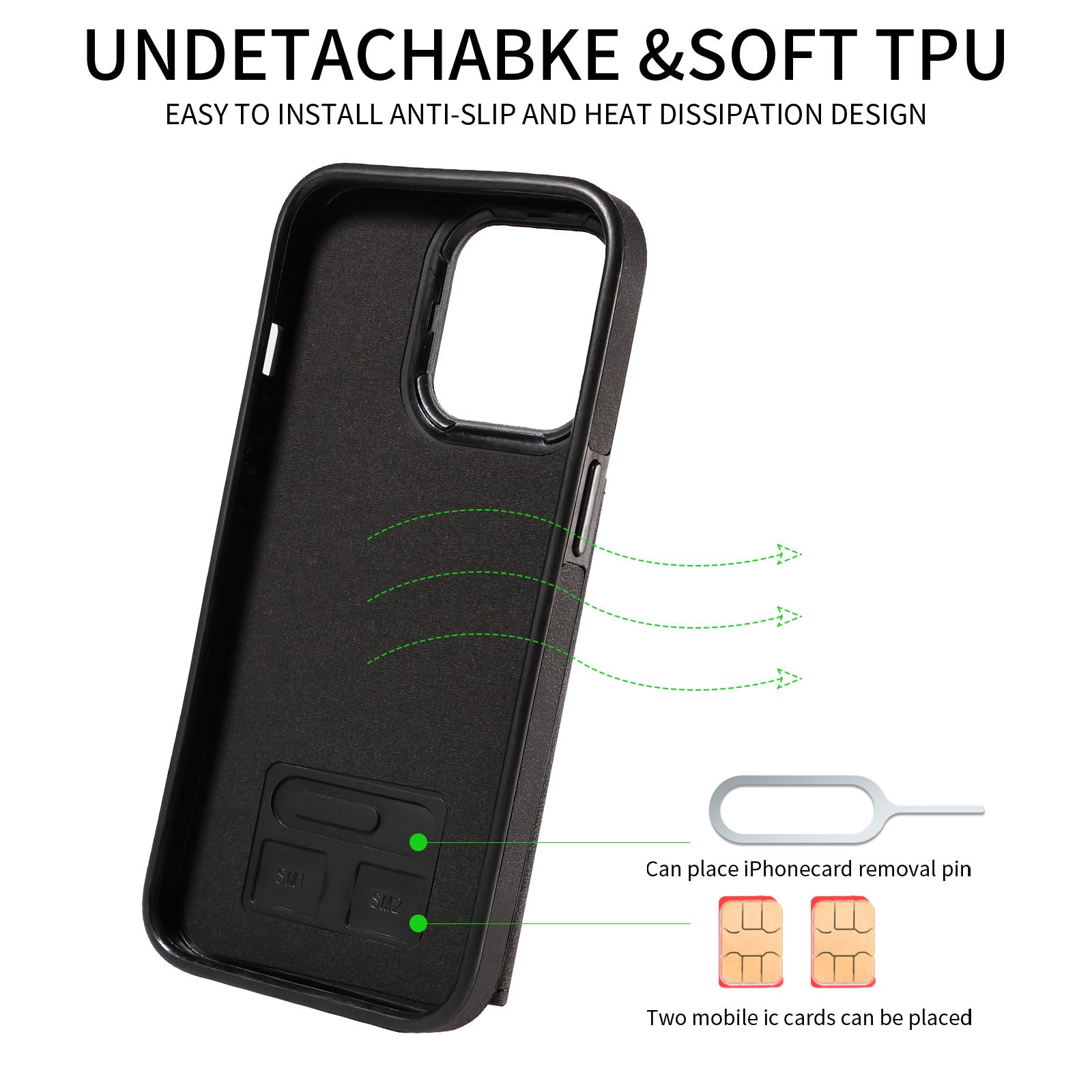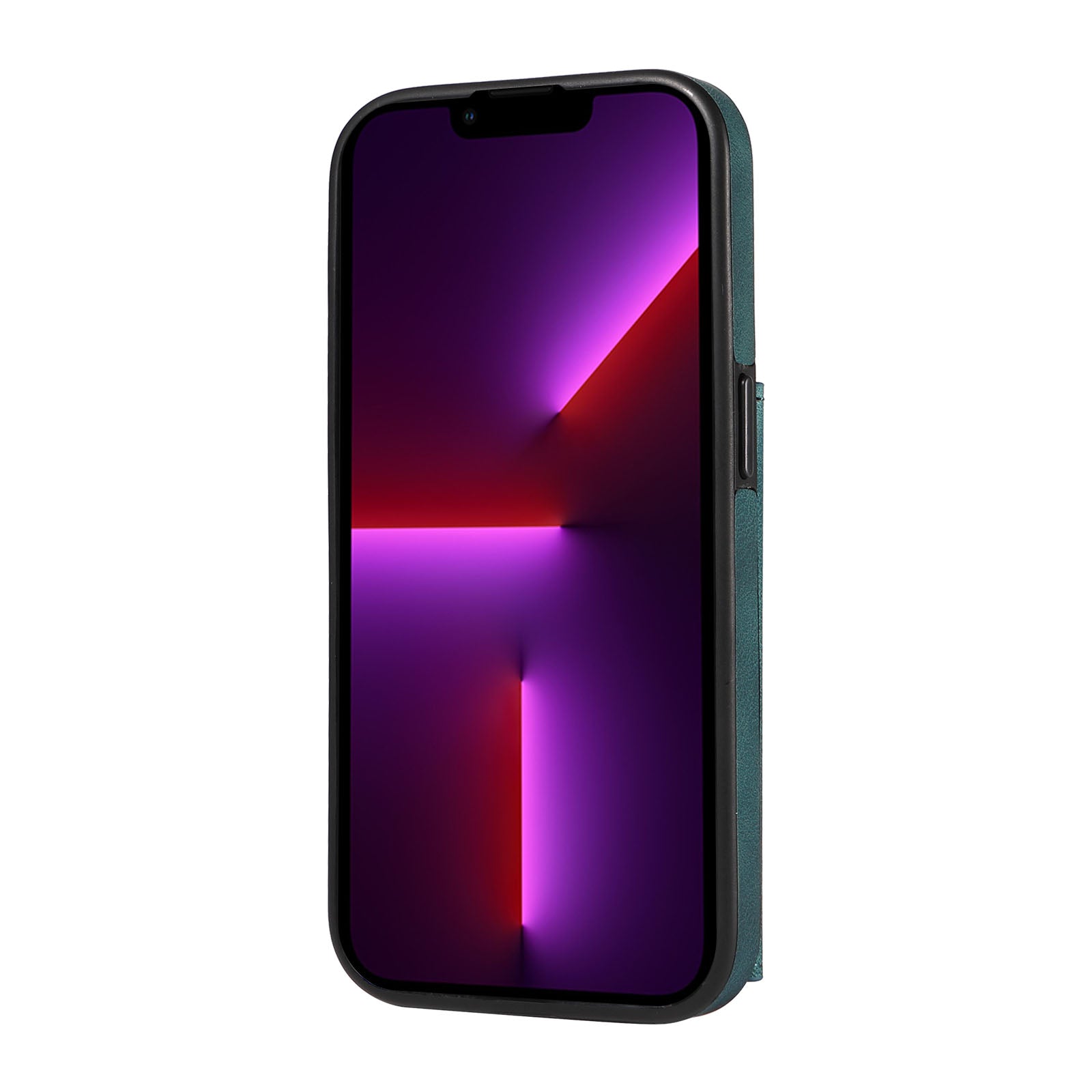 001 For iPhone 13 Pro 6.1 inch Card Holder PU Leather Coated TPU Cover Ring Kickstand Phone Case