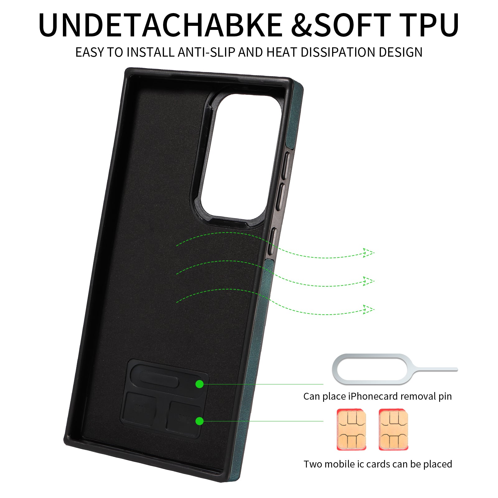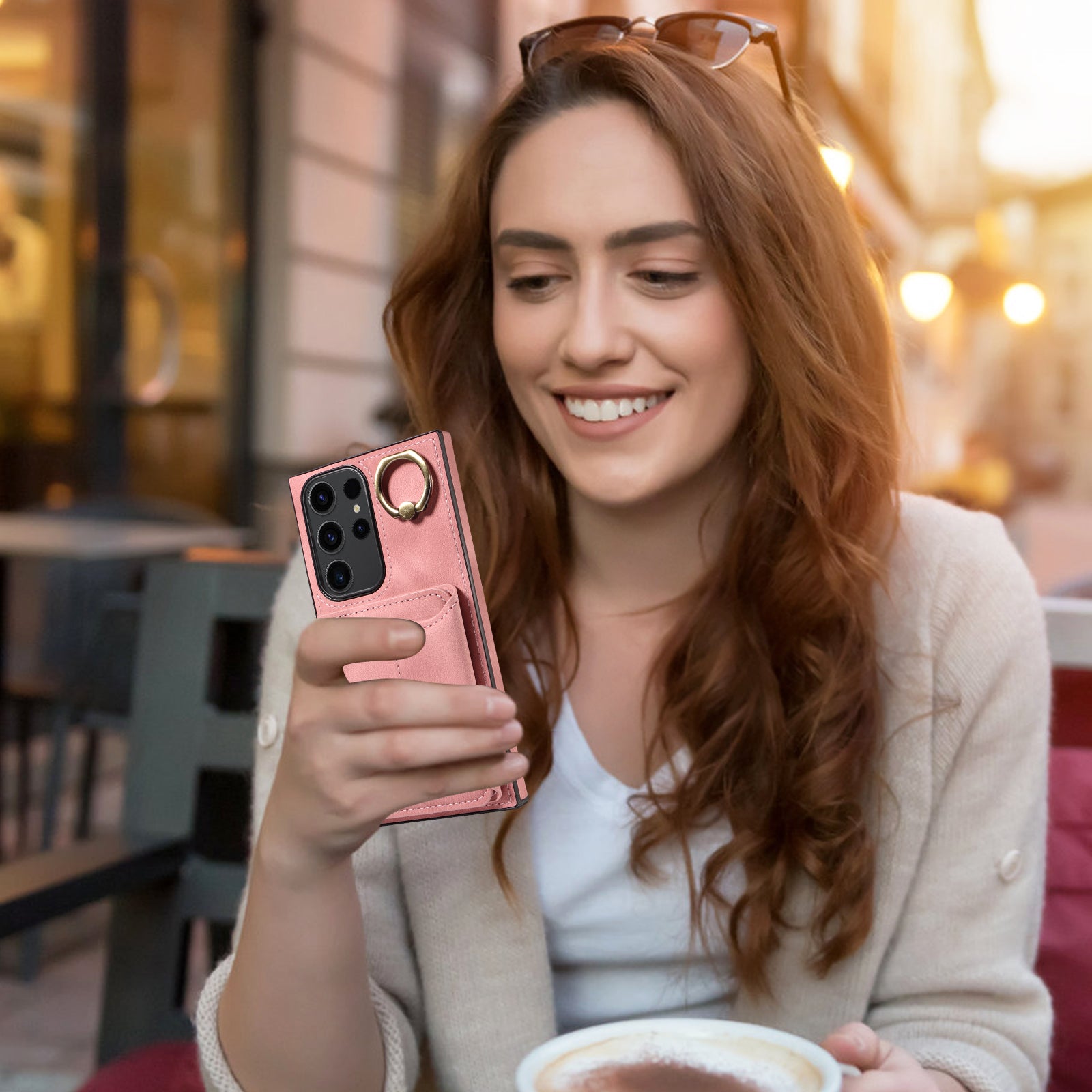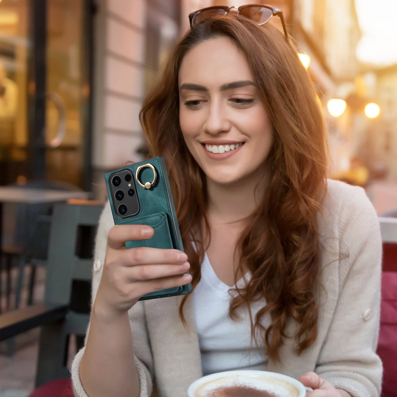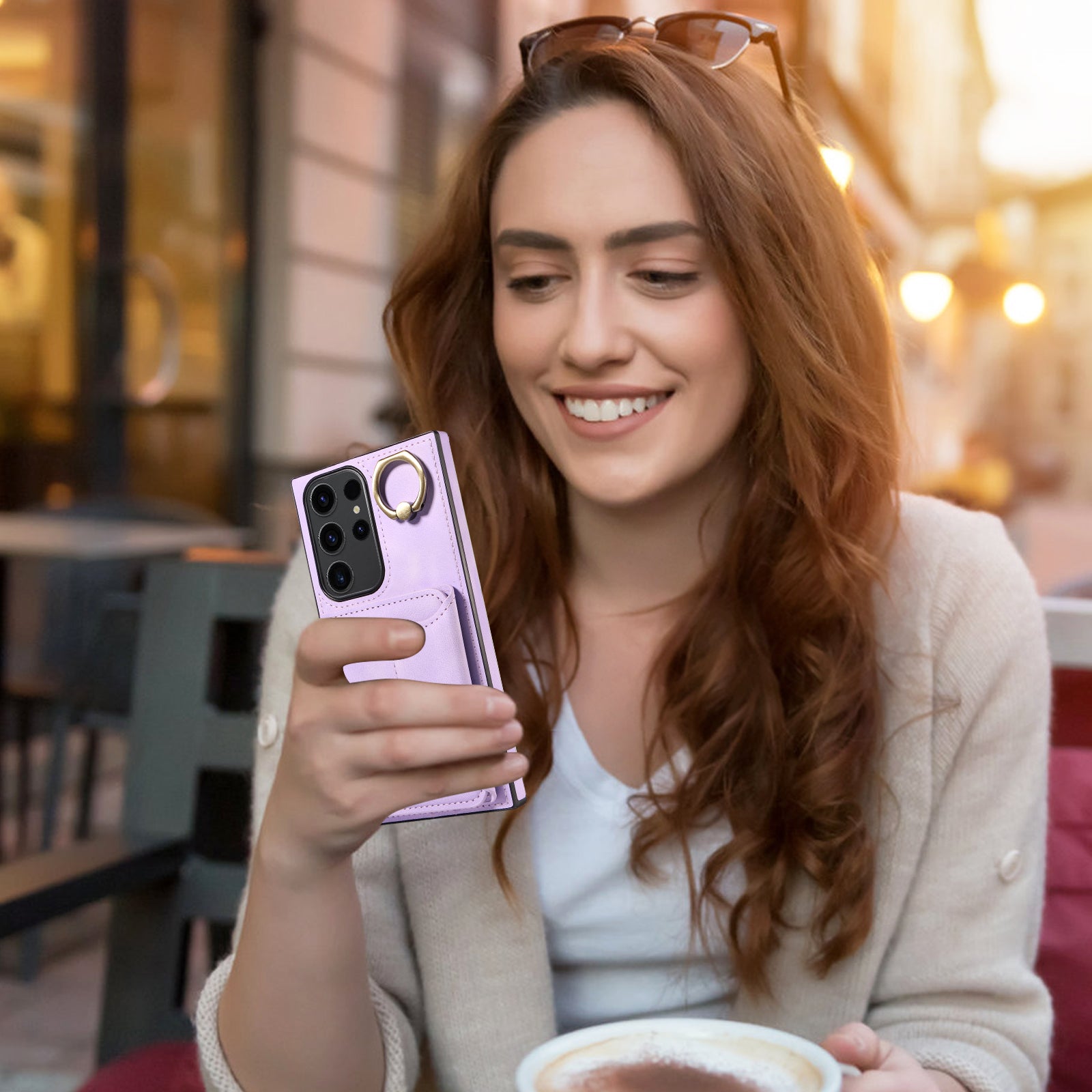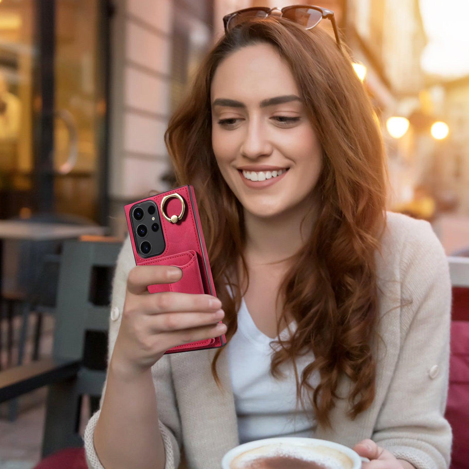 001 For Samsung Galaxy S23 Ultra PU Leather+TPU Card Holder Phone Case Ring Kickstand Skin-touch Cover