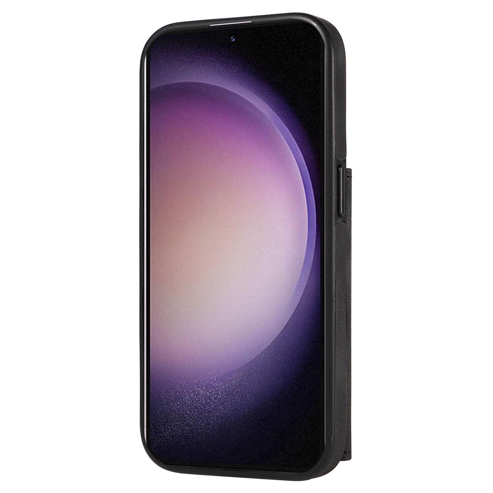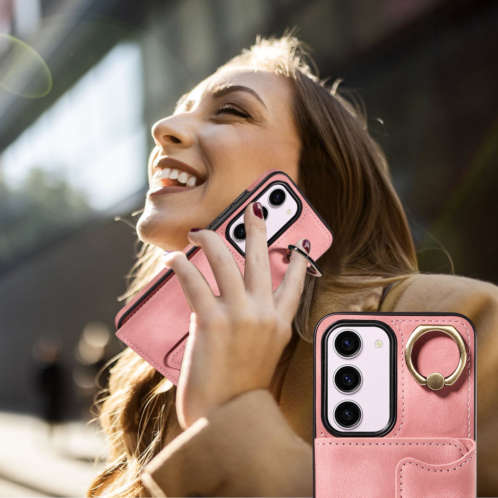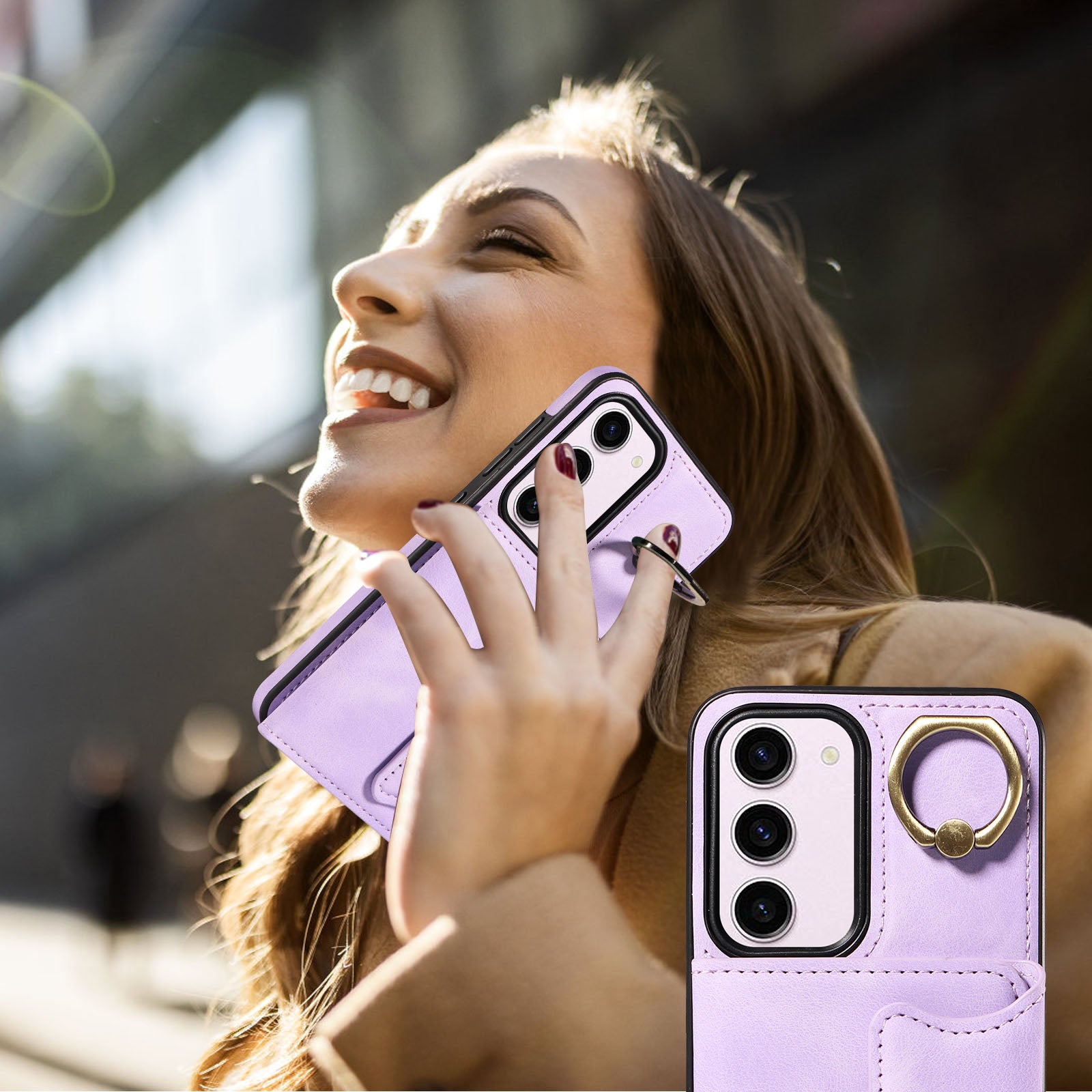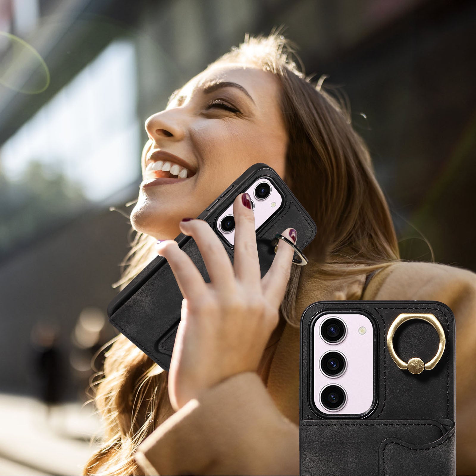 001 PU Leather+TPU Back Cover for Samsung Galaxy S23 Ring Kickstand Phone Case with Card Holder