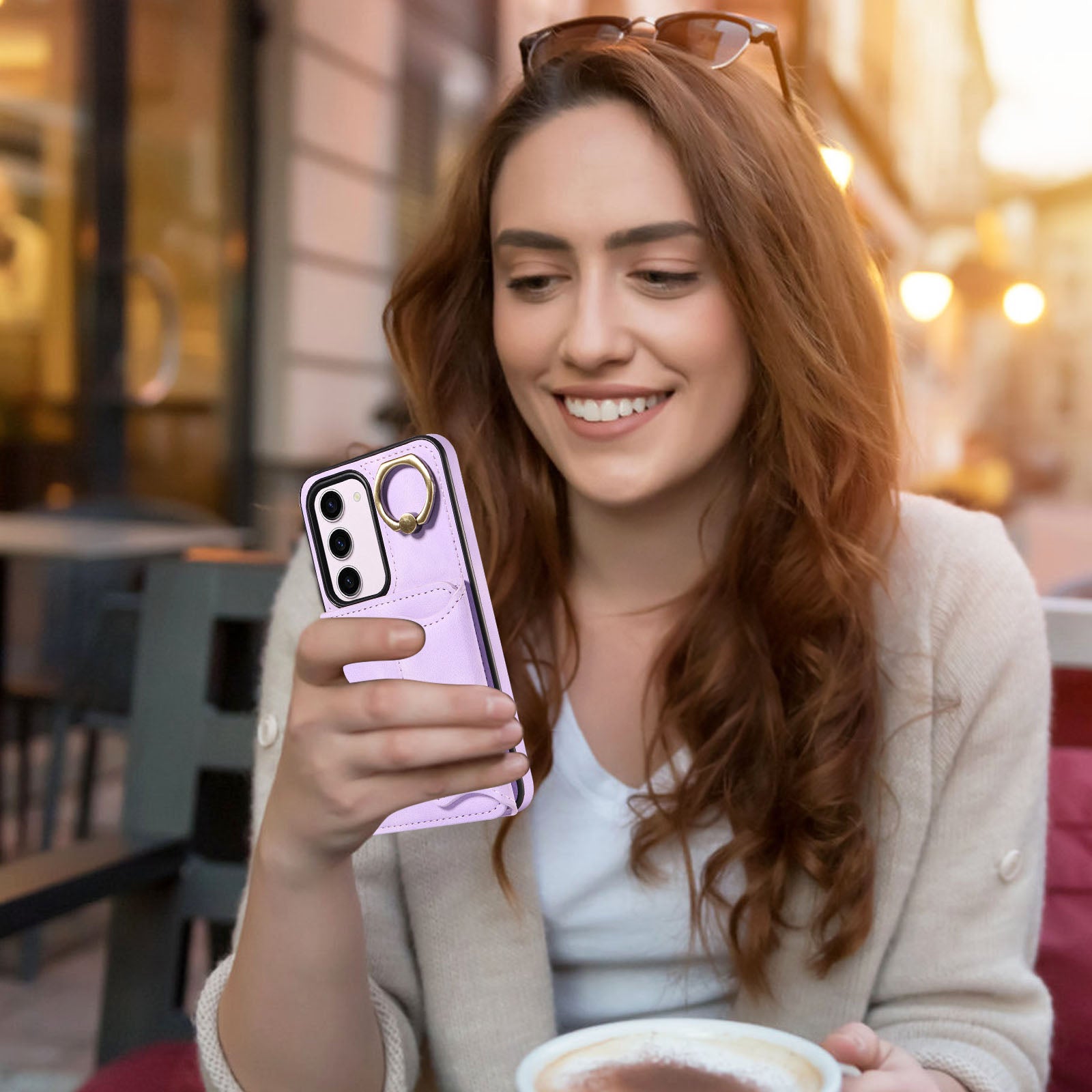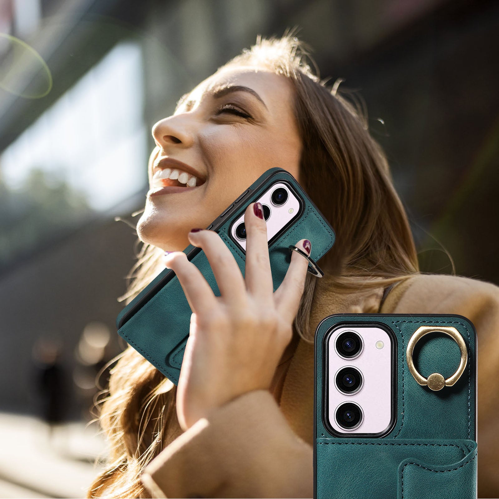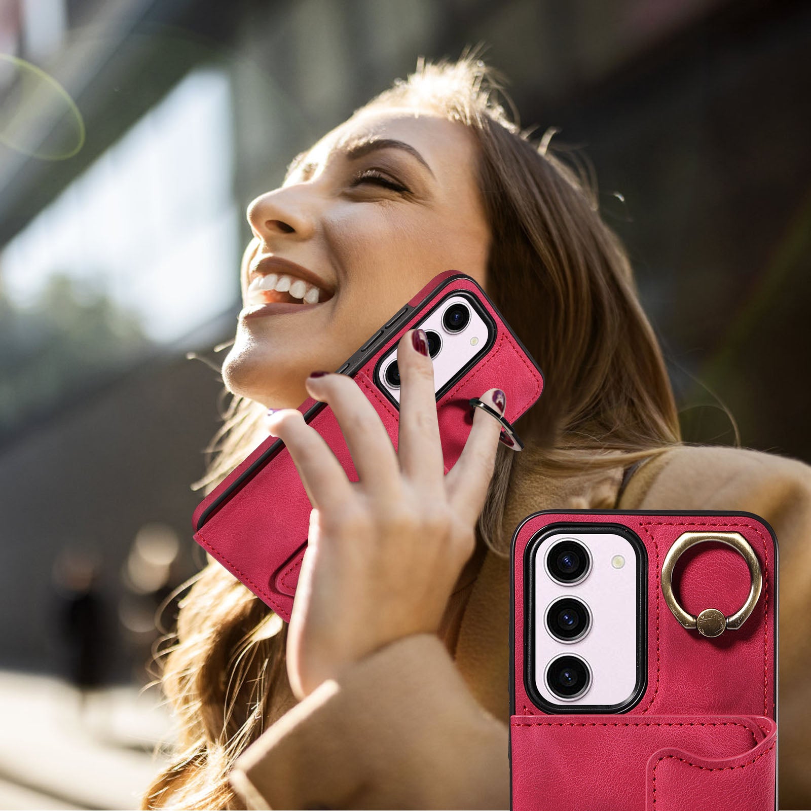 001 PU Leather+TPU Back Cover for Samsung Galaxy S23 Ring Kickstand Phone Case with Card Holder
