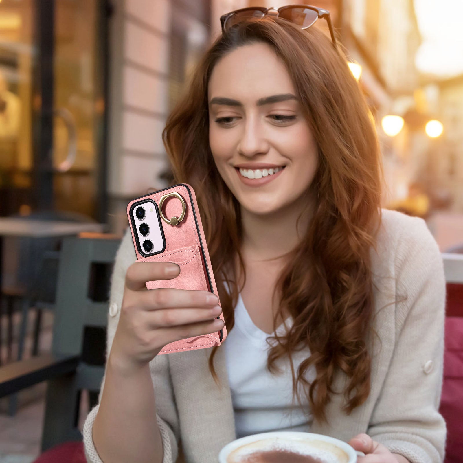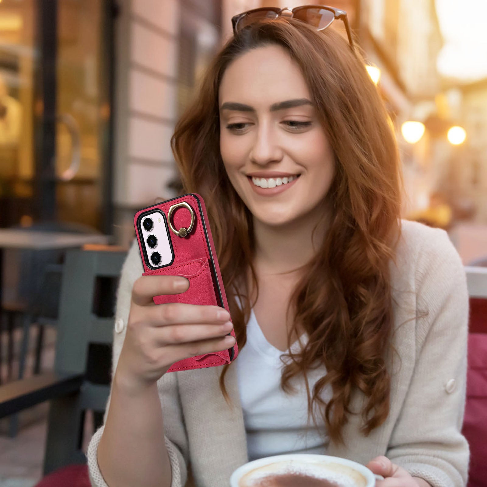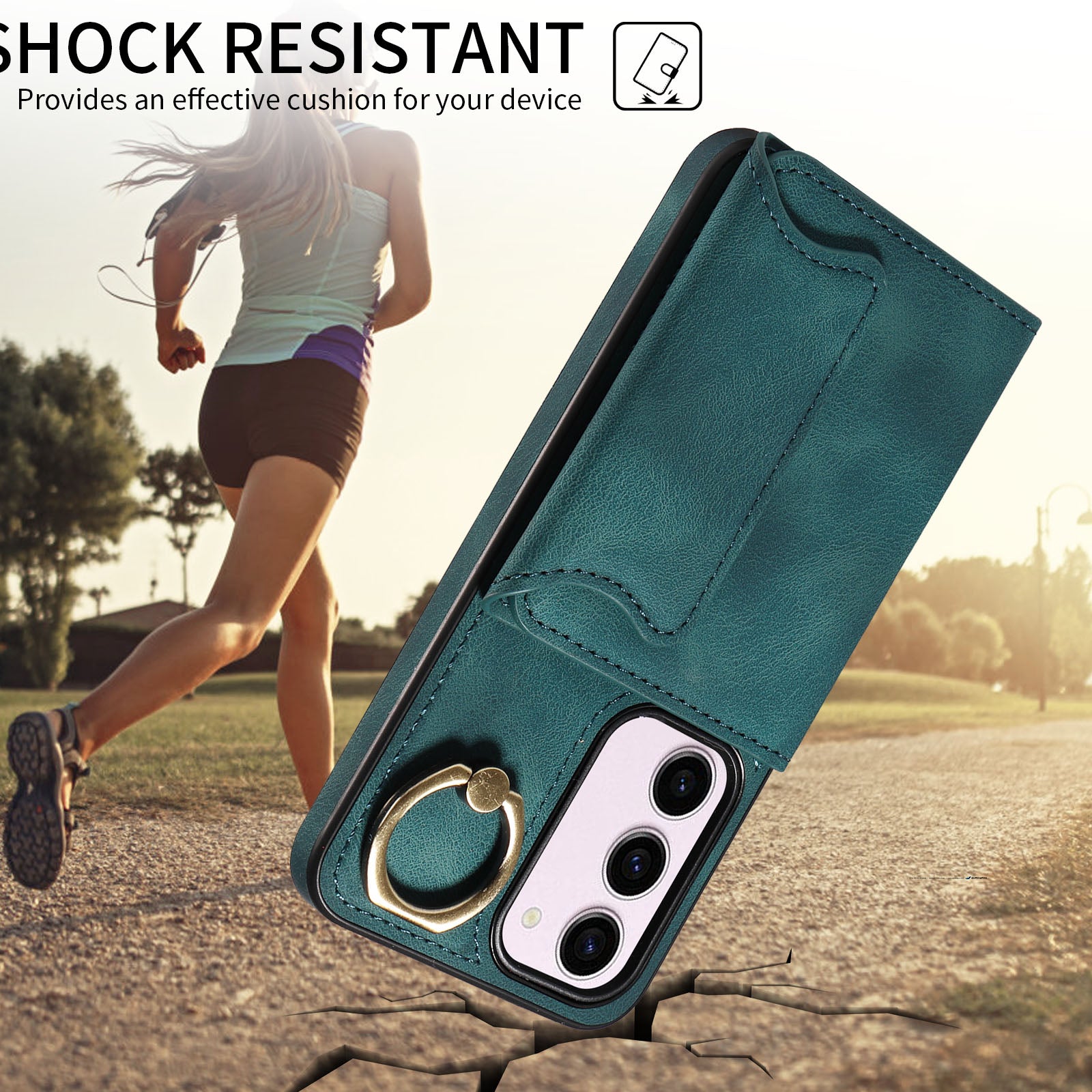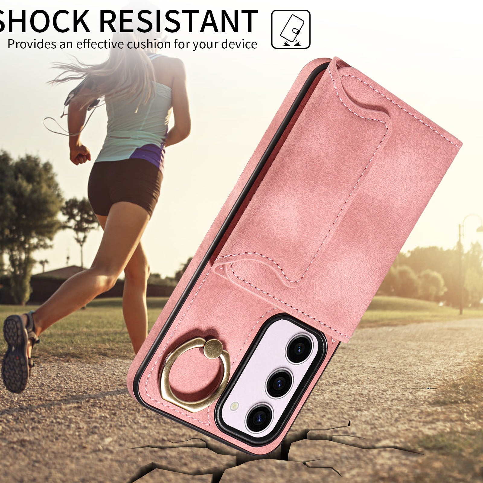 001 PU Leather+TPU Back Cover for Samsung Galaxy S23 Ring Kickstand Phone Case with Card Holder