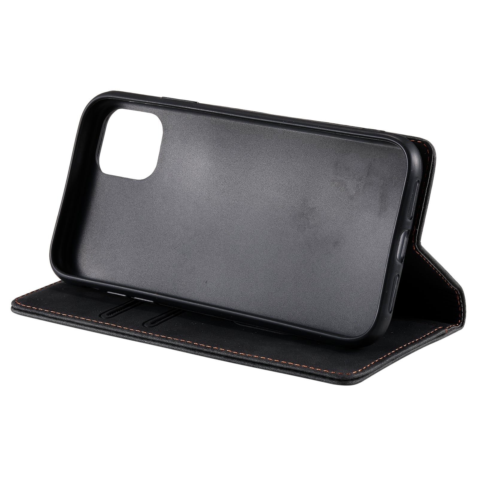 001 Series Auto-absorbed Skin-touch Feeling Leather Full-Protection Wallet Phone Case for iPhone 13 mini 5.4 inch