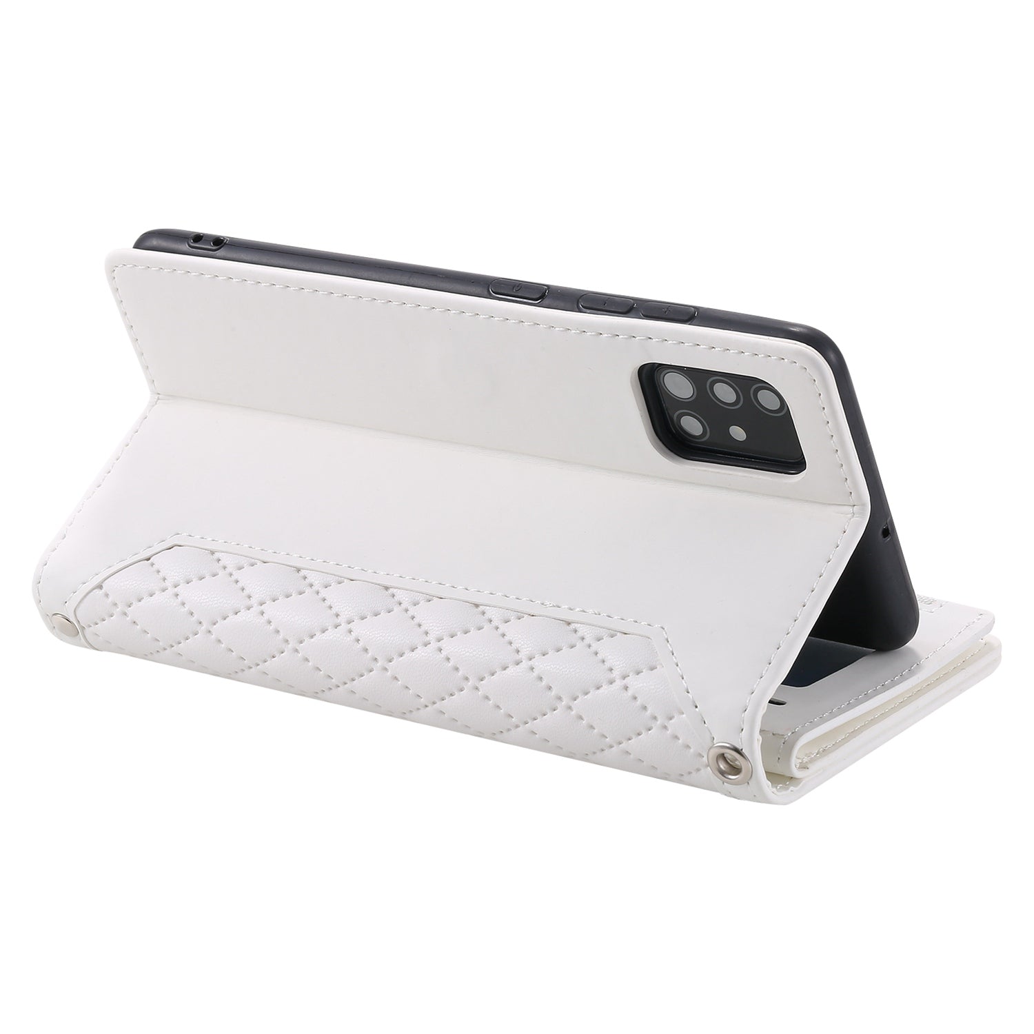 005 Style for Samsung Galaxy A51 4G SM-A515 Zipper Pocket Anti-scratch Phone Case Rhombus Texture PU Leather Stand Wallet Cover with Wrist Strap