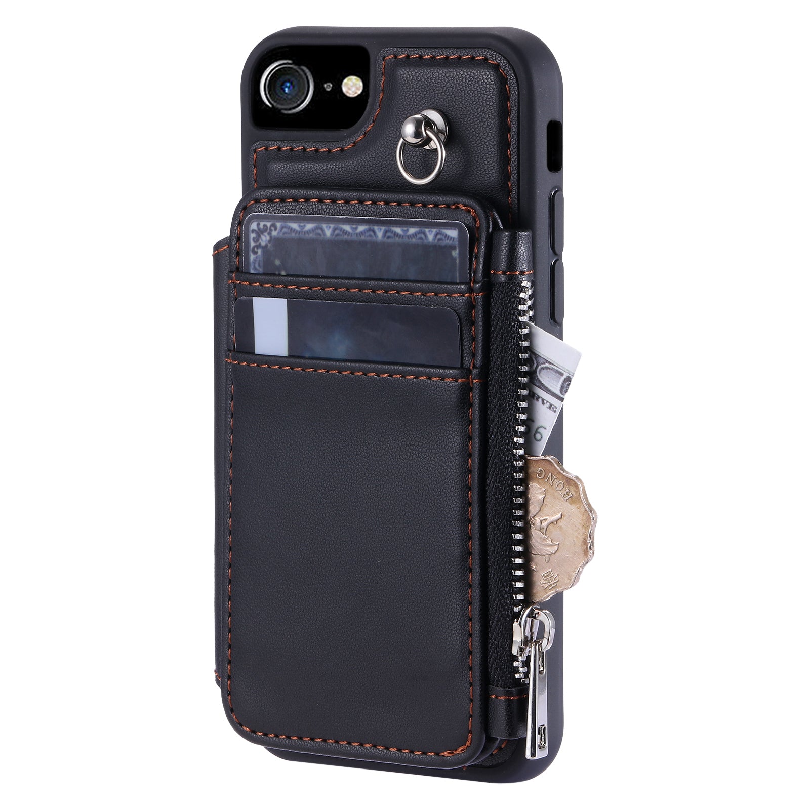 009 For iPhone 6 / 6s / 7 / 8 / SE (2020) / SE (2022) Back Shell RFID Blocking Zipper Wallet Case PU Leather+TPU Kickstand Phone Cover with Straps