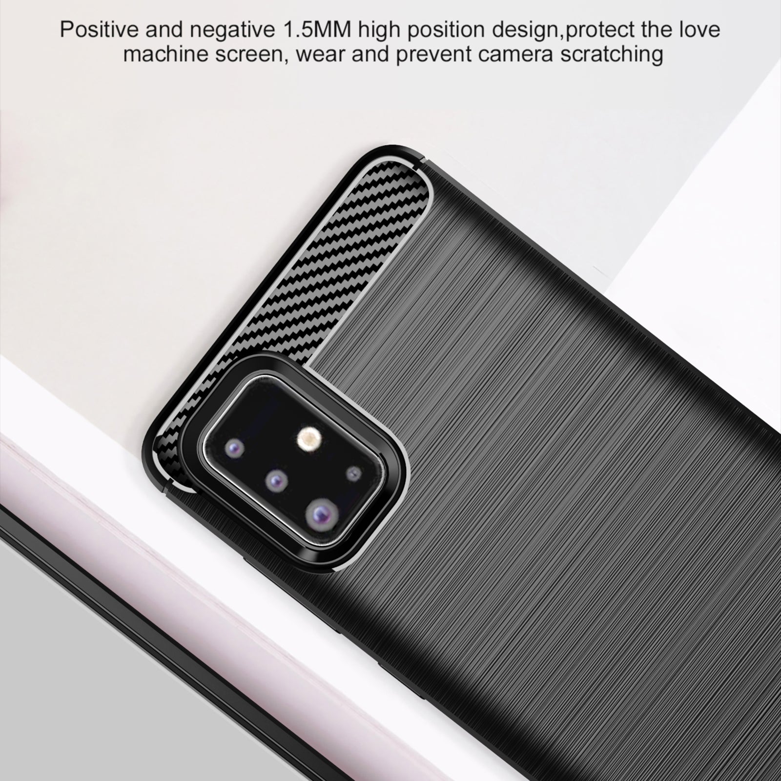 1.8mm eat Dissipation TPU Case Full Brushed Surface Coverage Carbon Fiber Texture Phone Cover for Samsung Galaxy A71 4G SM-A715
