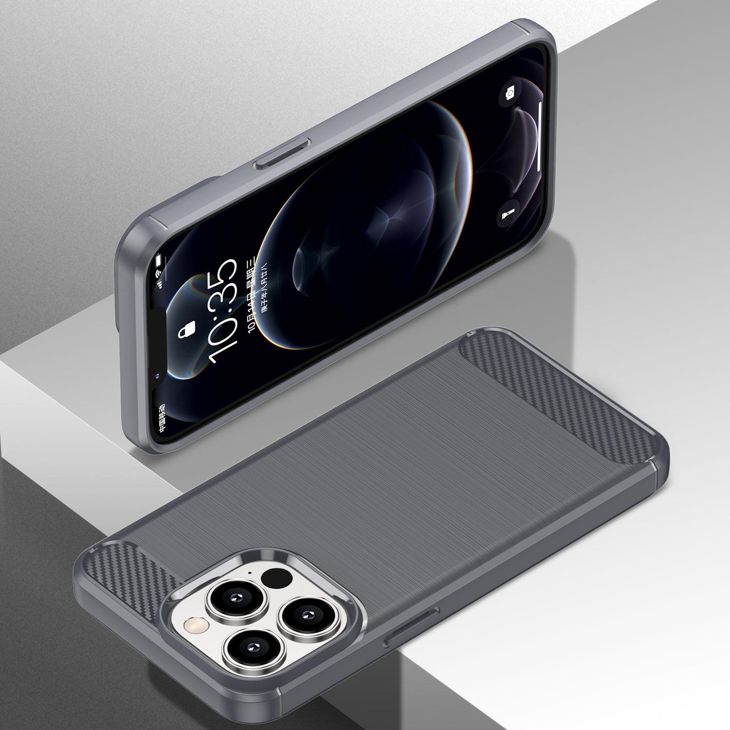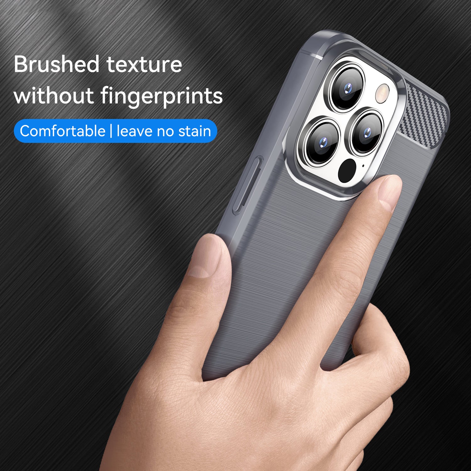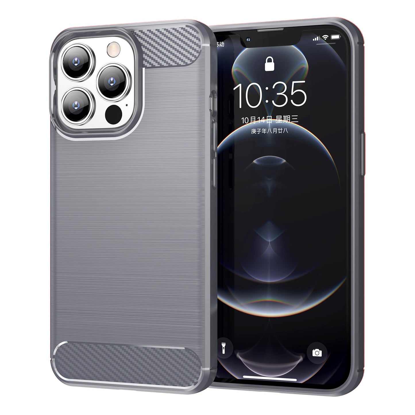 1.8mm Stylish Carbon Fiber Brushed Texture Anti-fingerprint Soft TPU Phone Back Case Cover for iPhone 13 Pro Max