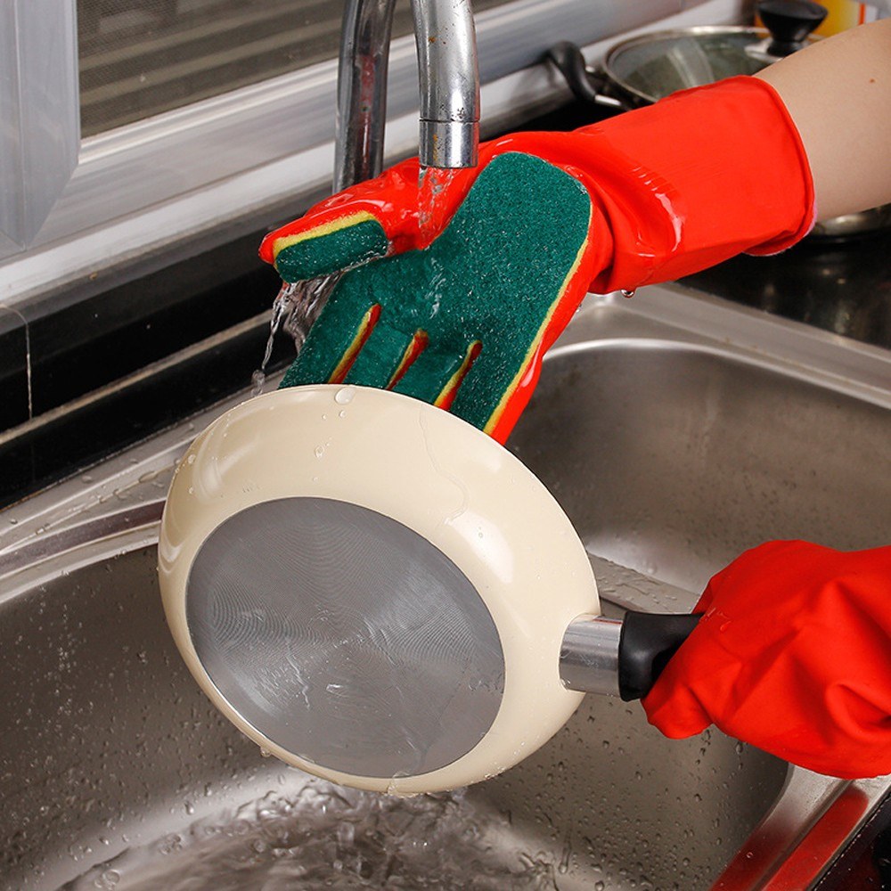 1 Pair Household Cleaning Gloves Home Kitchen Dishwashing Sponge Fingers Rubber Cleaning Gloves