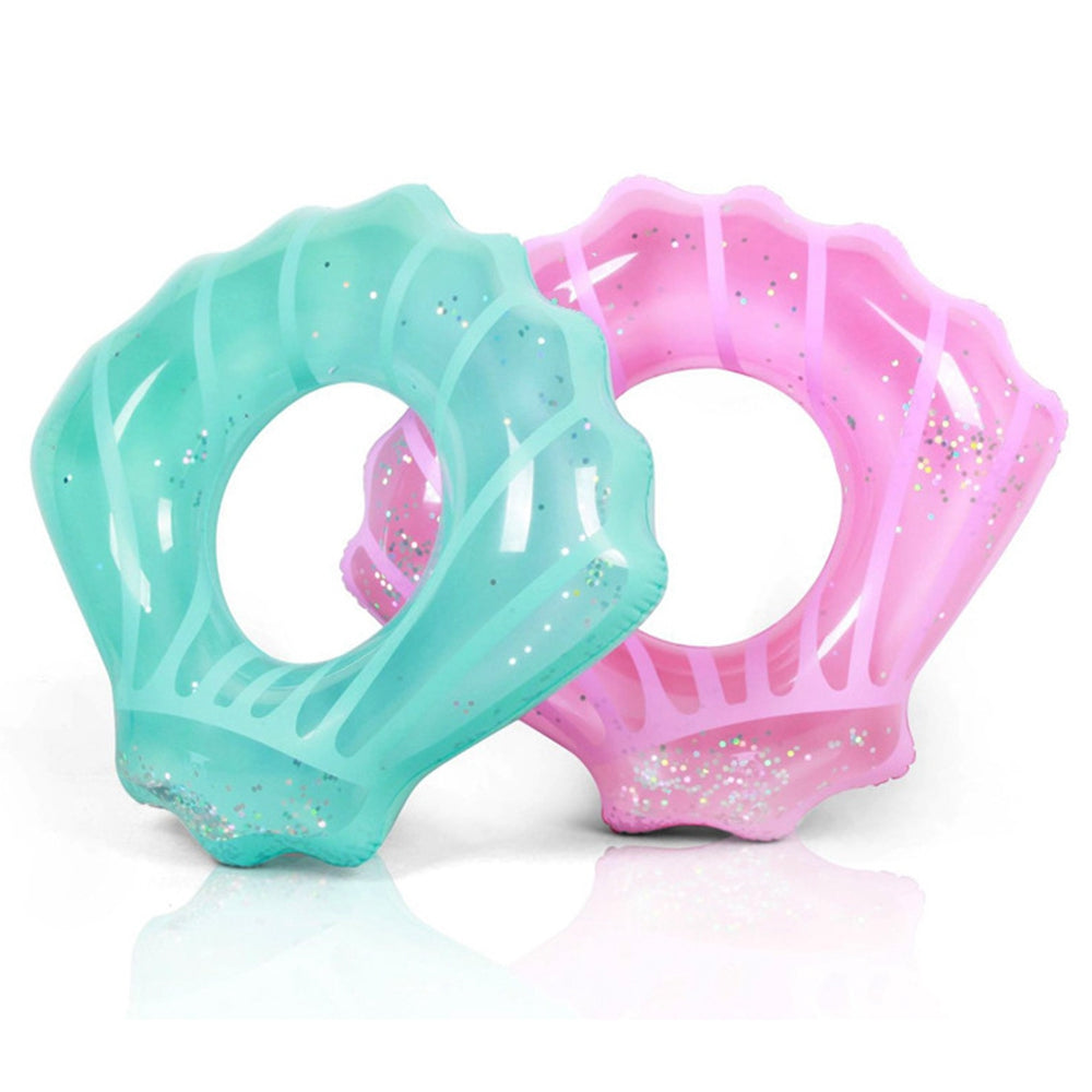 100*110cm PVC Swim Ring Inflatable Sequins Shell Shape Water Float for Children Adults
