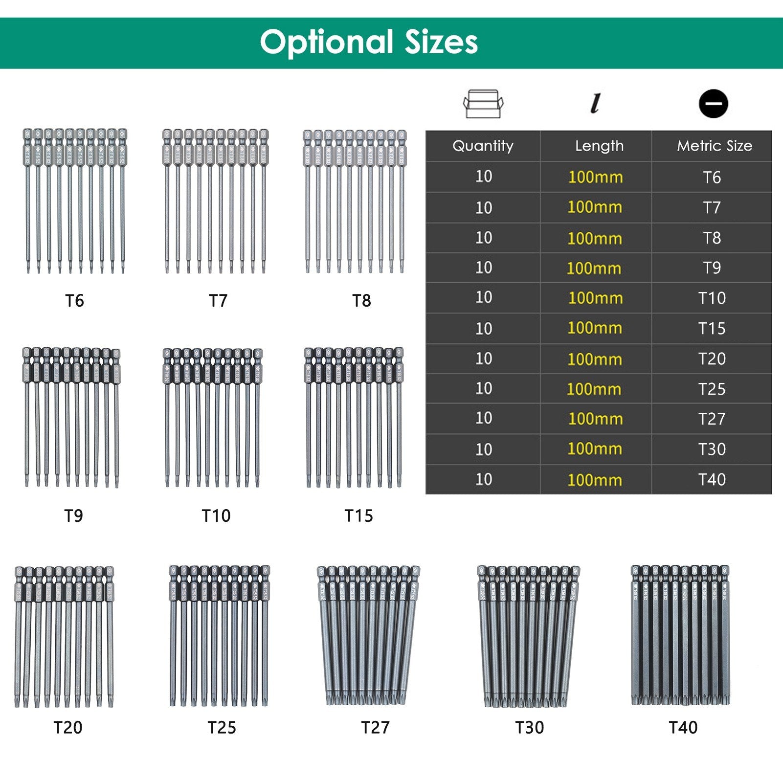 - Standard Bits - 100mm(3.93in) length, 1/4 inch drive, suitable for pneumatic screwdriver, electric hand drill, power screwdriver, and more