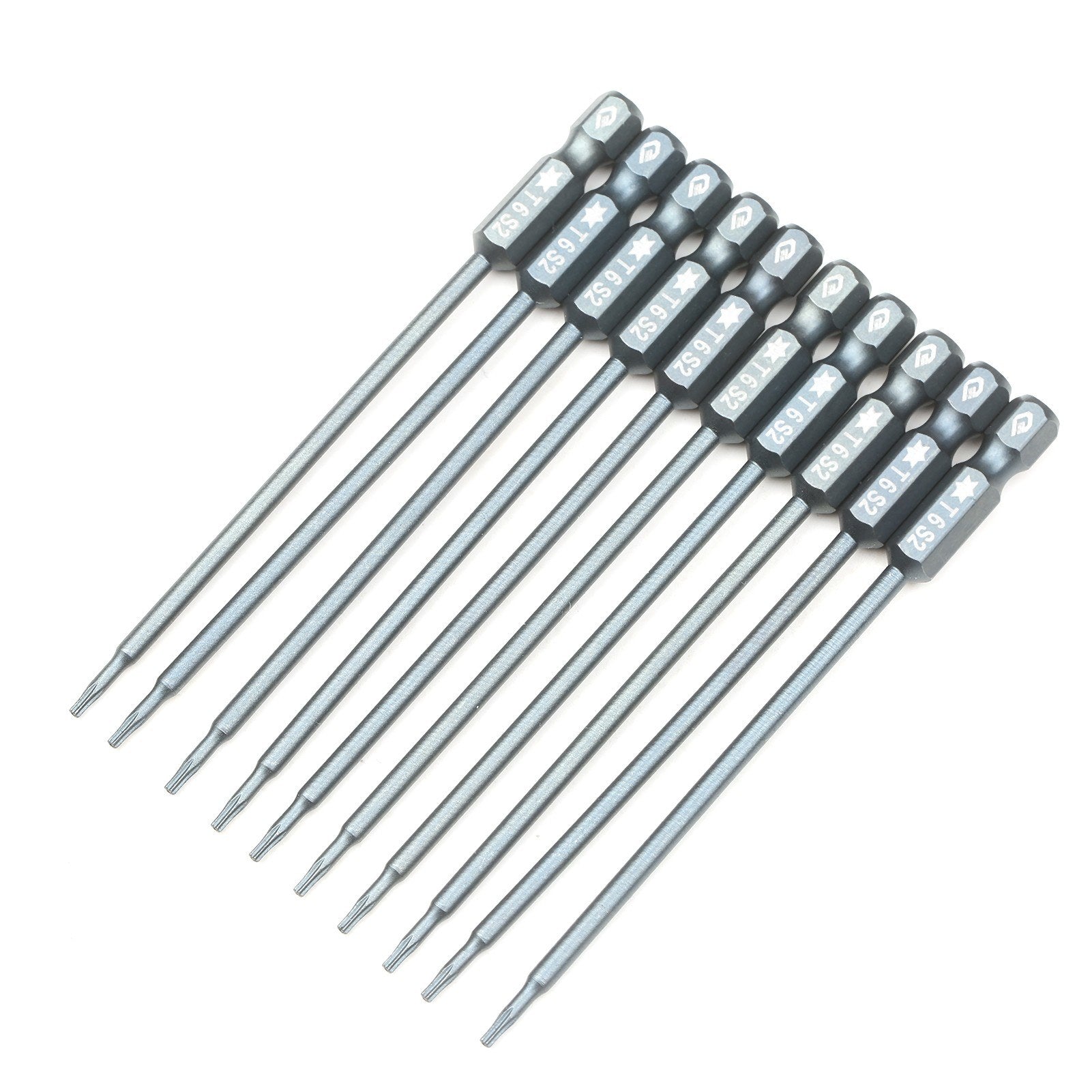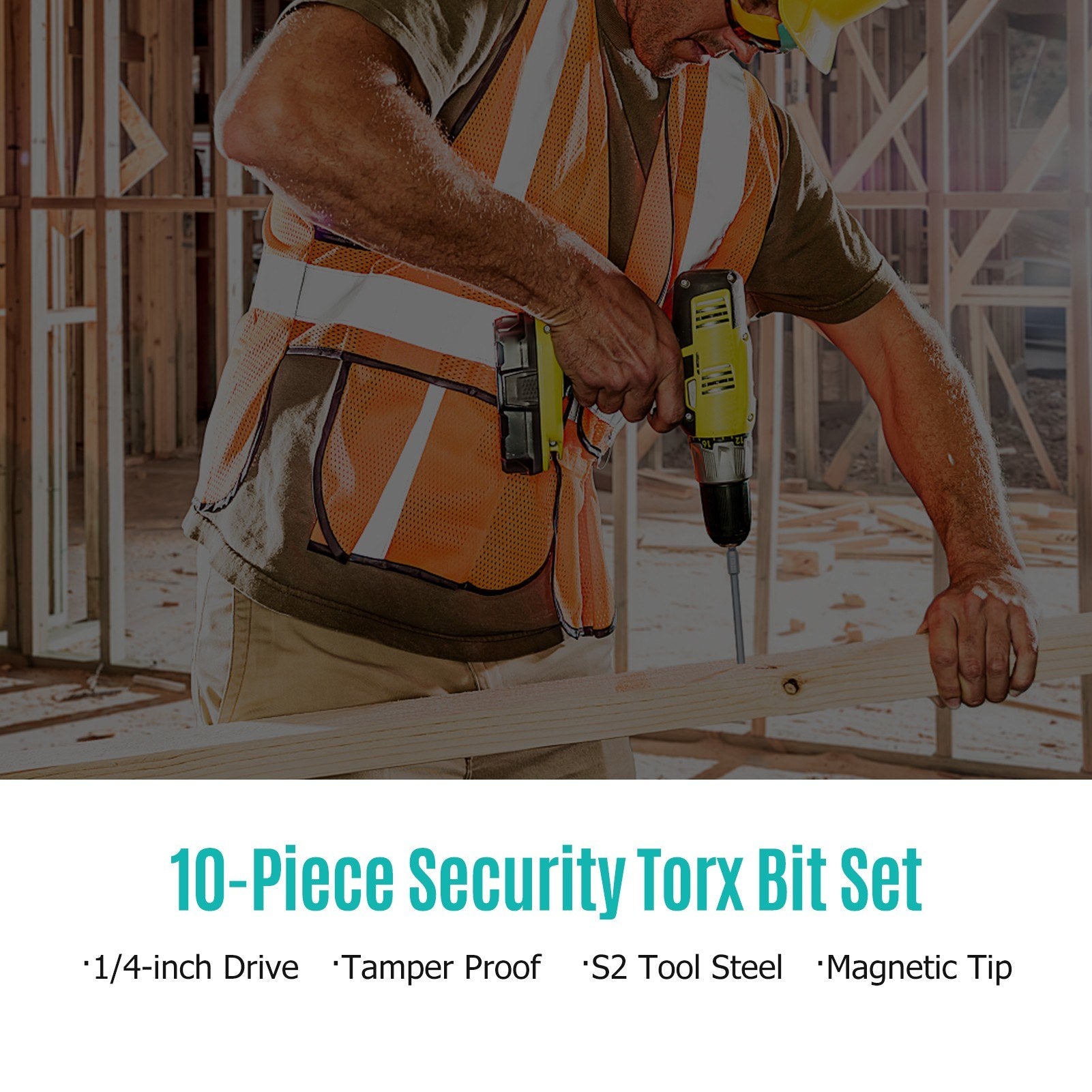 10Pcs/Set T6 Security Torx Bit 1/4-inch Drive S2 Alloy Steel Magnetic Screw Driver Bit Set for Power Screwdriver Electric Hand Drill