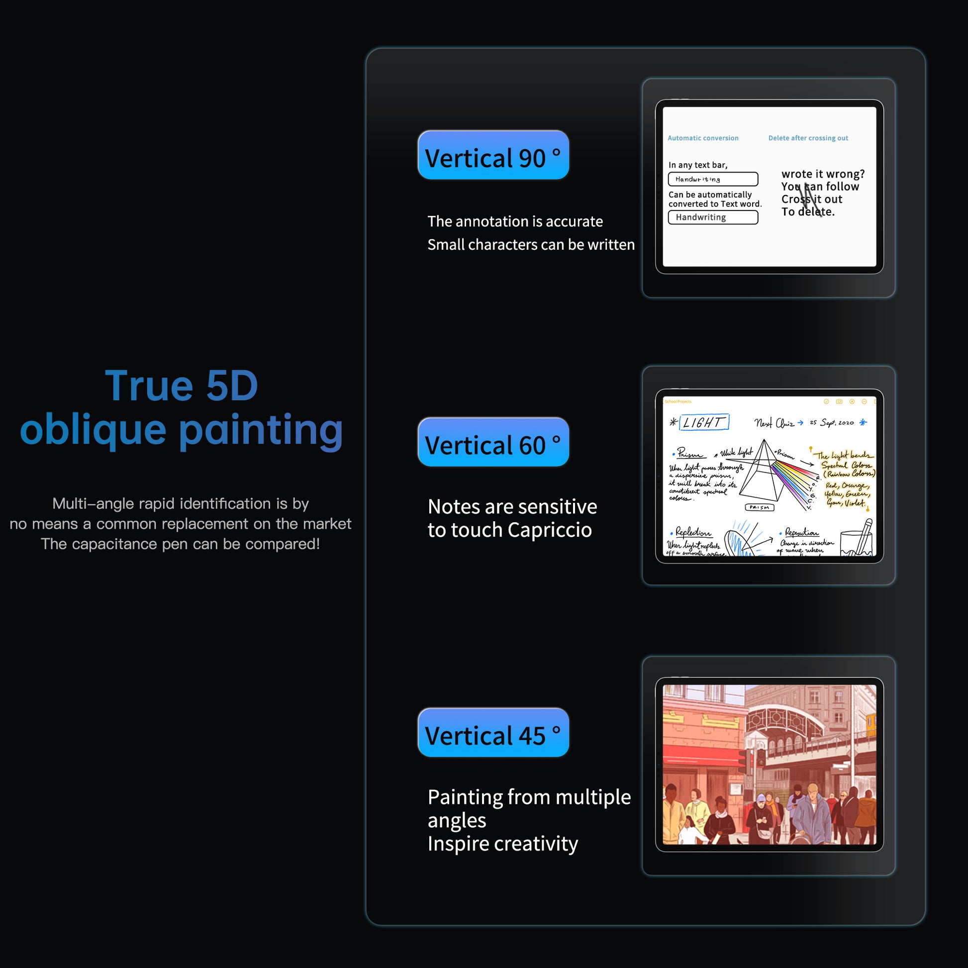 - Functional description: writing, tilt pressure, anti-touch, magnetic charging