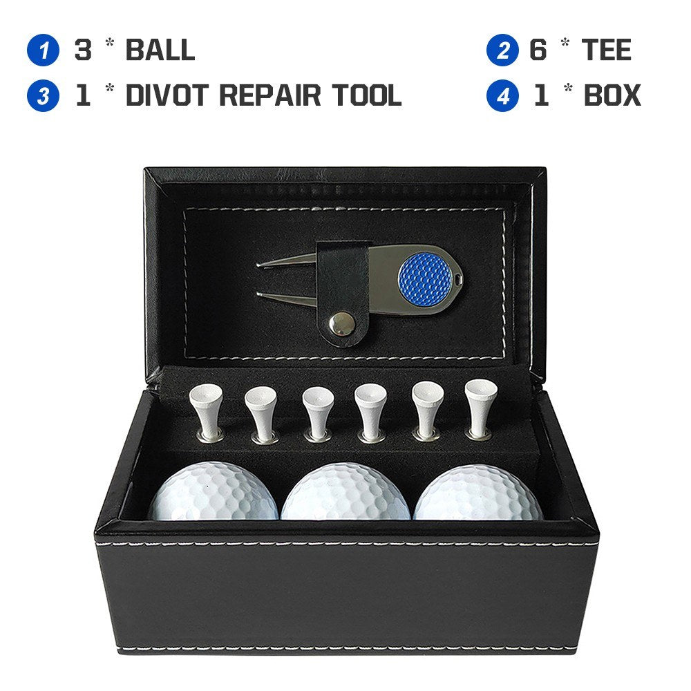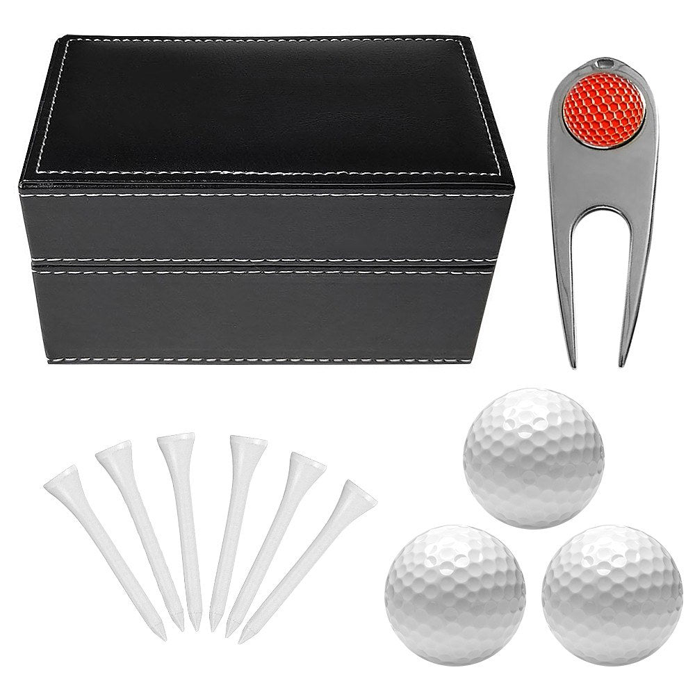 11 Pcs Golf Set Golf Training Accessories with 6 Golf Tees 3 Golf Balls Divot Repair Tool Leather Box Set