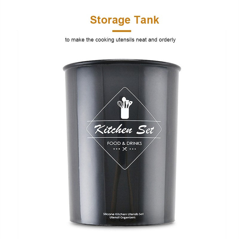 - Items included (without storage tank): leaky spoon, spoon, spatula, leaky shovel, spoon, spaghetti claw, scraper, spatula, oil brush, eggbeater, 9-inch food clip