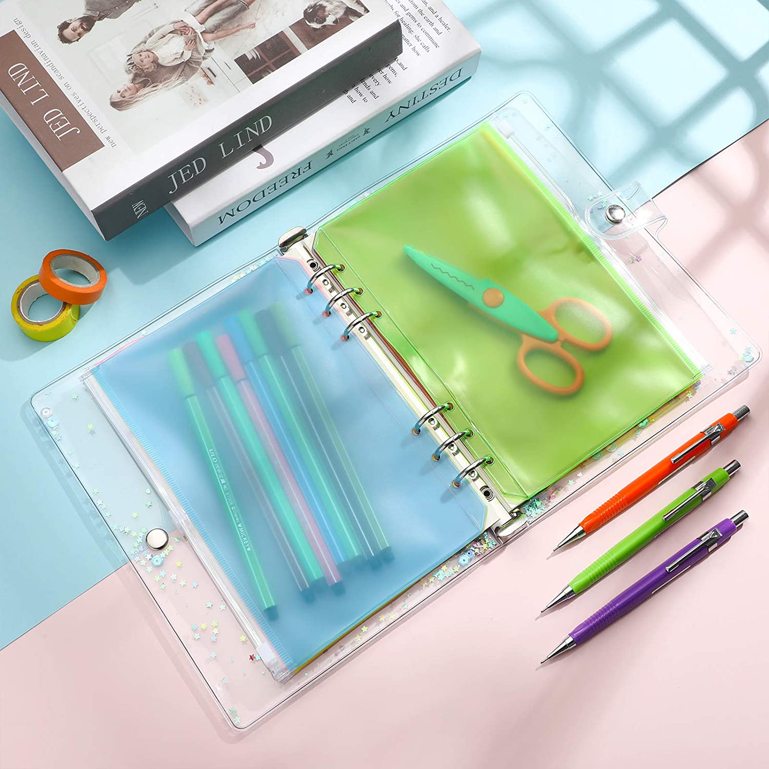 12PCS A5 Size Binder Pockets 6 Colors Zipper 6-Hole Folders Waterproof PVC Pouch Document Bill Bags Storage Bags