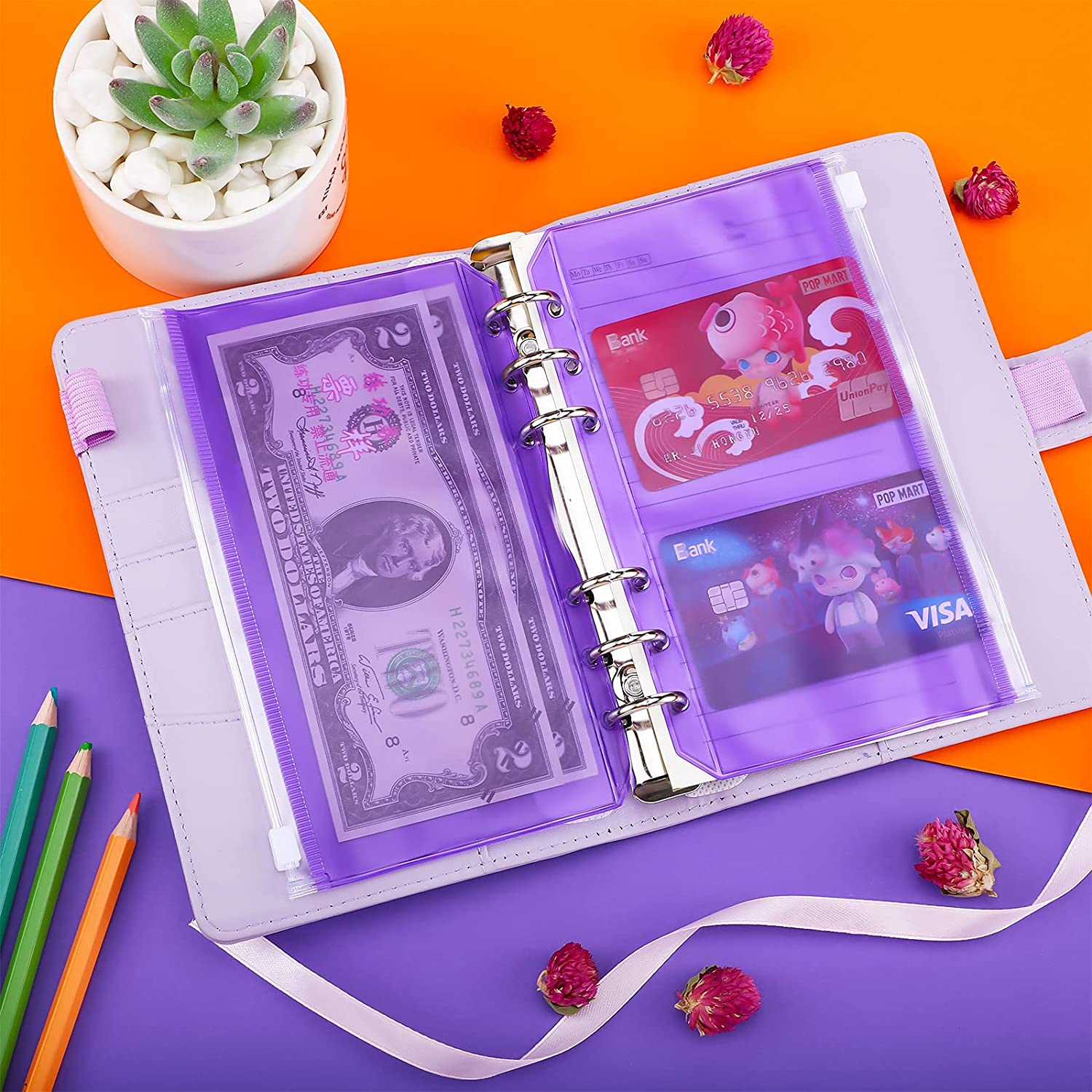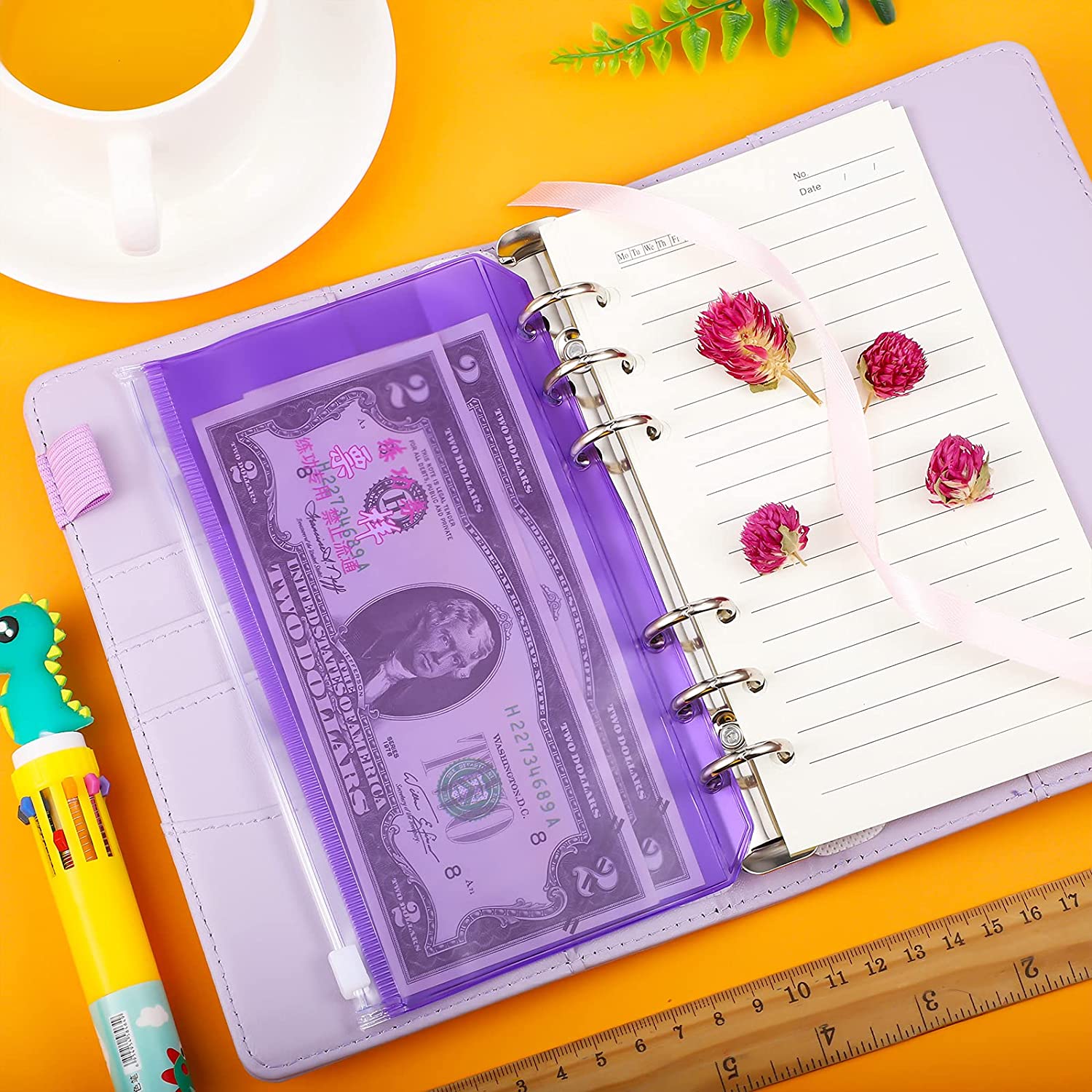 12PCS A6 Size Binder Pockets Purple Zipper Folders Waterproof PVC Pouch Document Bill Bags Storage Bags for 6-Ring Binder