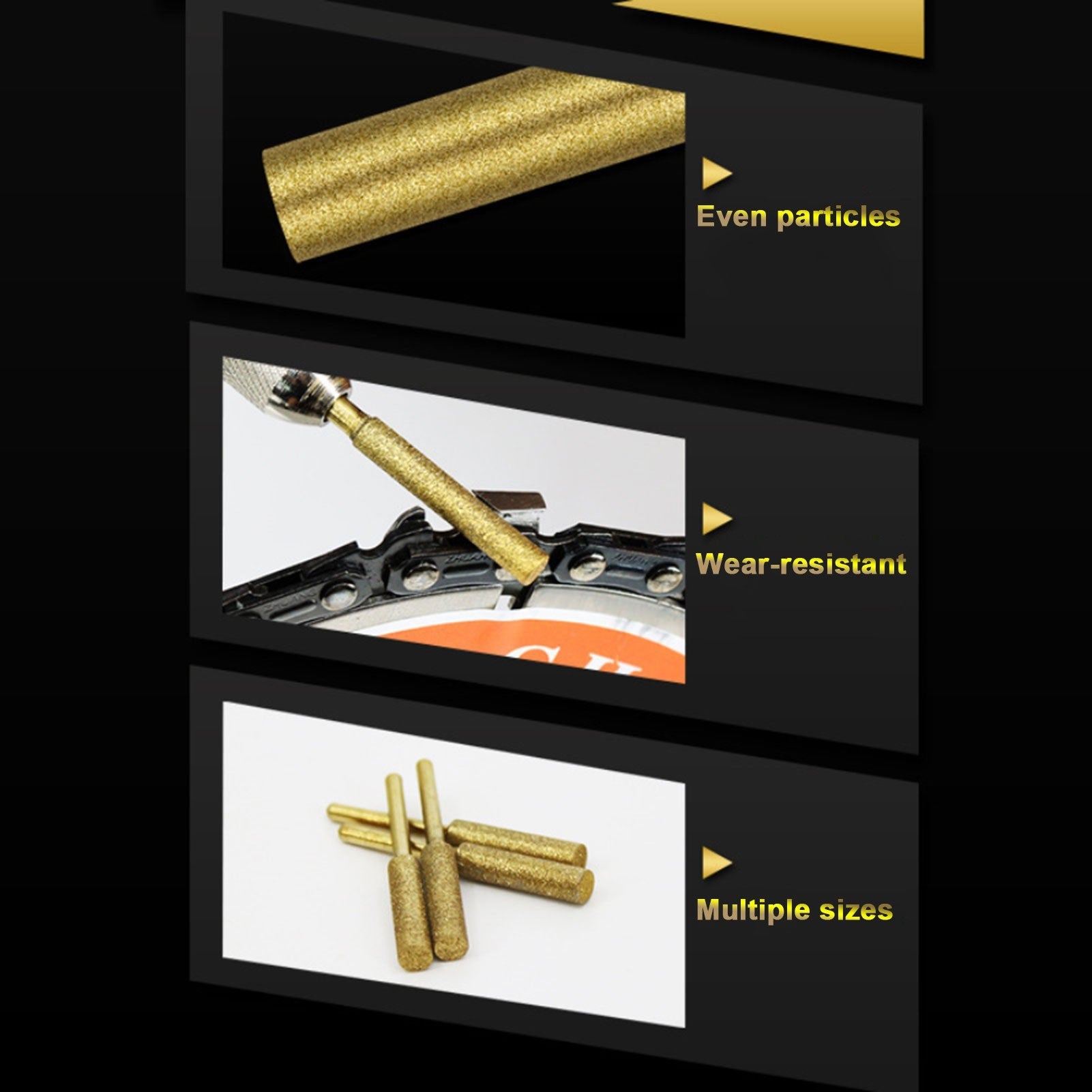 12Pcs chainsaw bits, titanium plated, specially designed for electric saw sharpeners, can sharpen the chain stably and effectively.