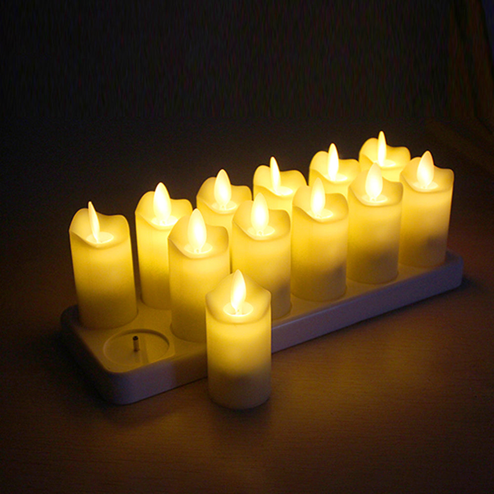 12PCS/Pack Rechargeable Flameless Candles Realistic Dancing LED Flames with Remote Control