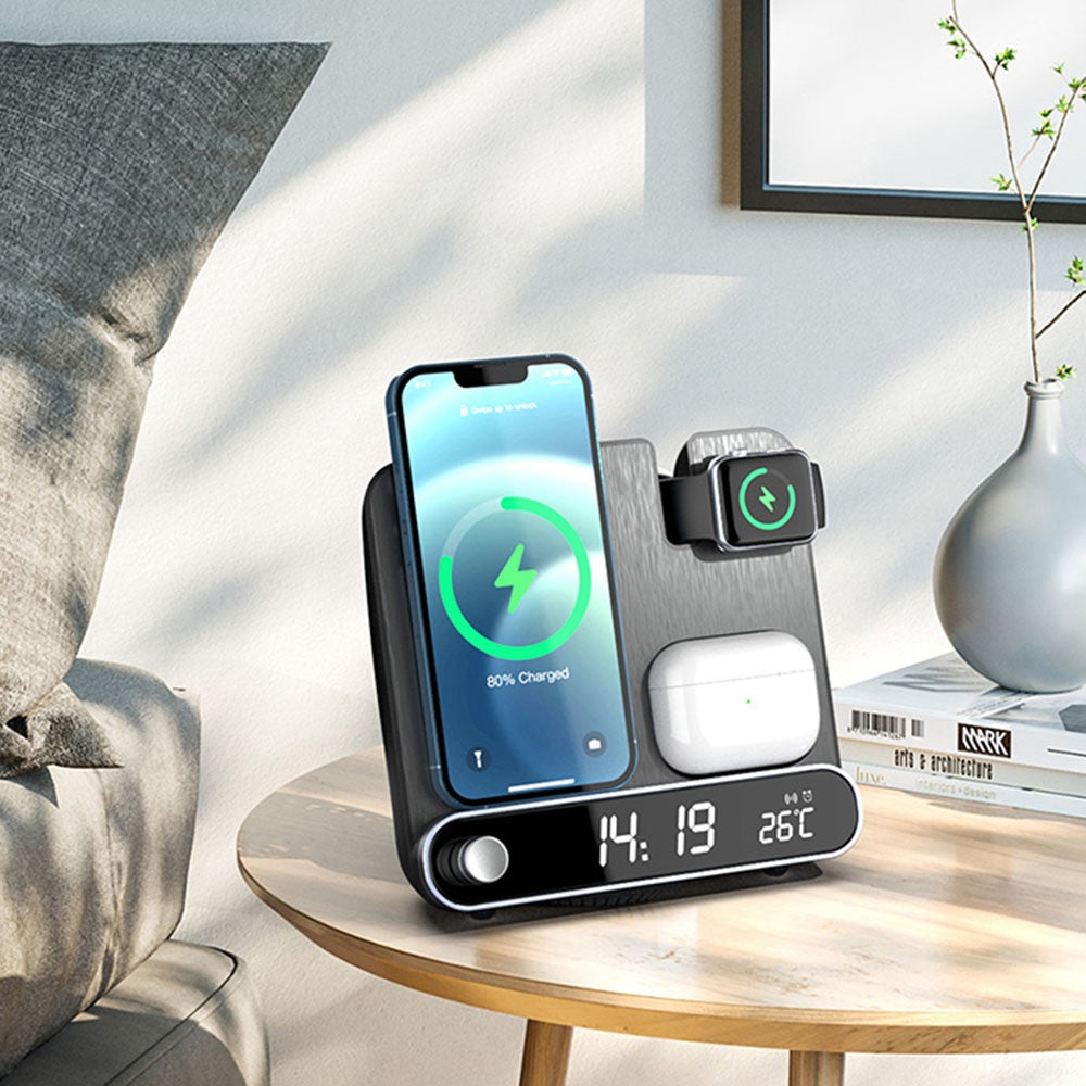 15W Wireless Charger 3 in 1 Multi-function Charging Station Desktop Charging Stand with Alarm Clock Function for iPhone iWatch AirPods