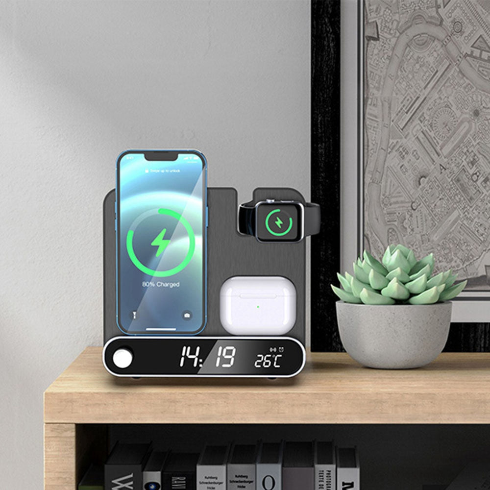 - This wireless charger not only can charge your devices but also can be used as an alarm clock