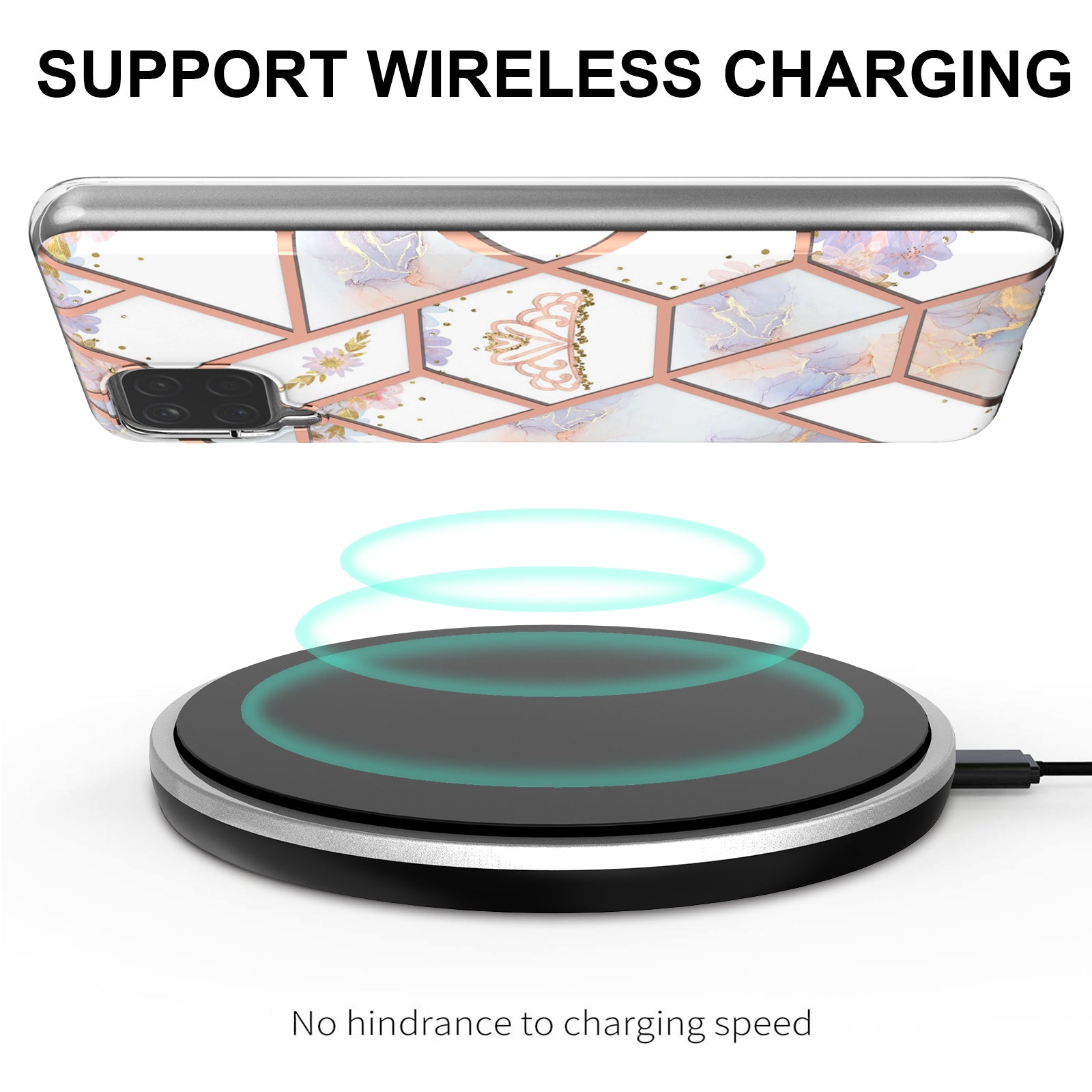 2.0mm IMD IML Electroplating Marble Flower Pattern Phone Case for Samsung Galaxy A12