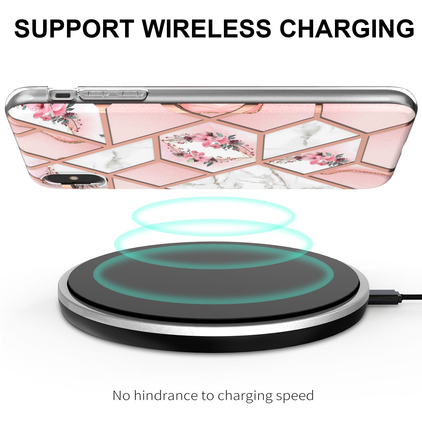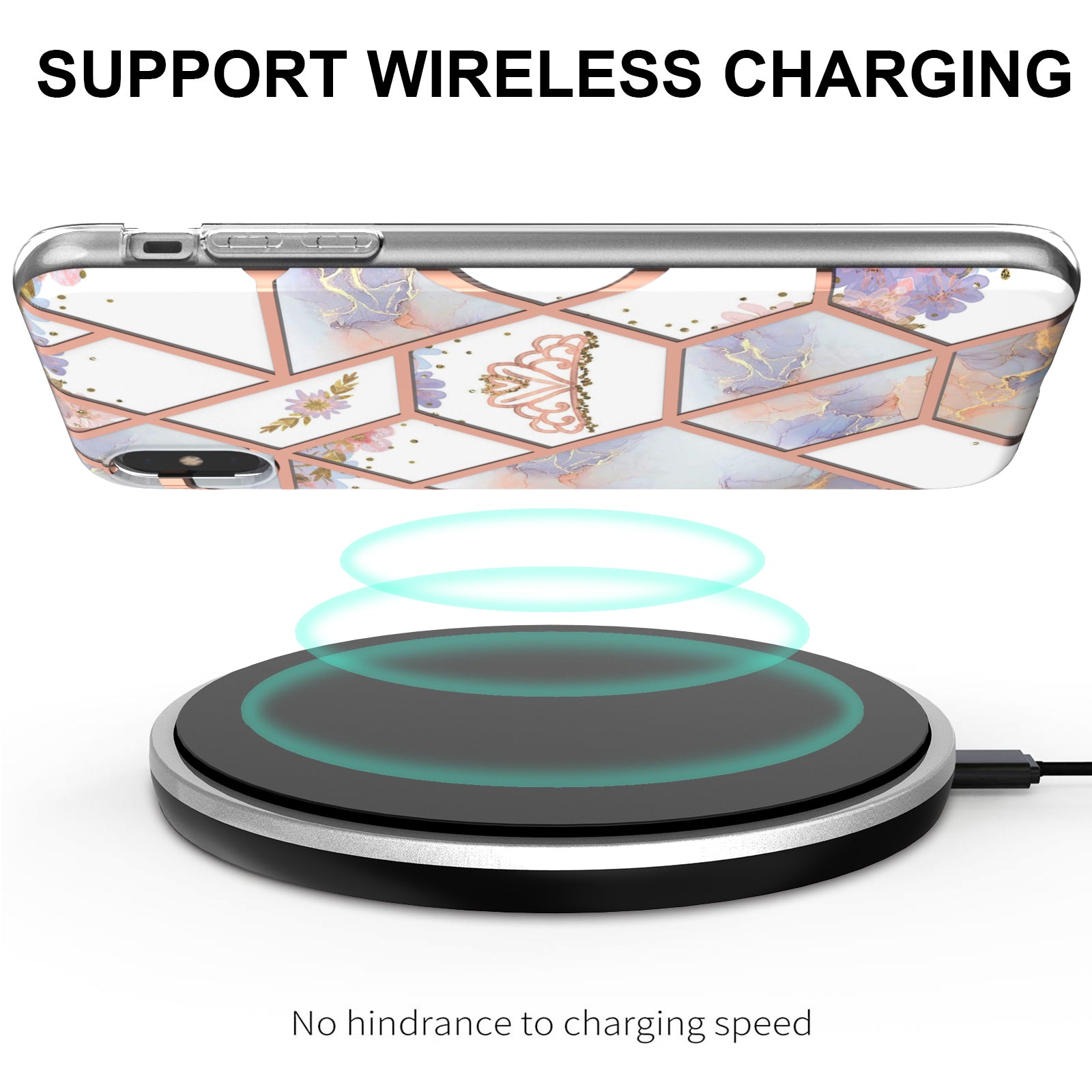 2.0mm IMD IML Electroplating Marble Flower Pattern TPU Shell for iPhone XS Max 6.5 inch