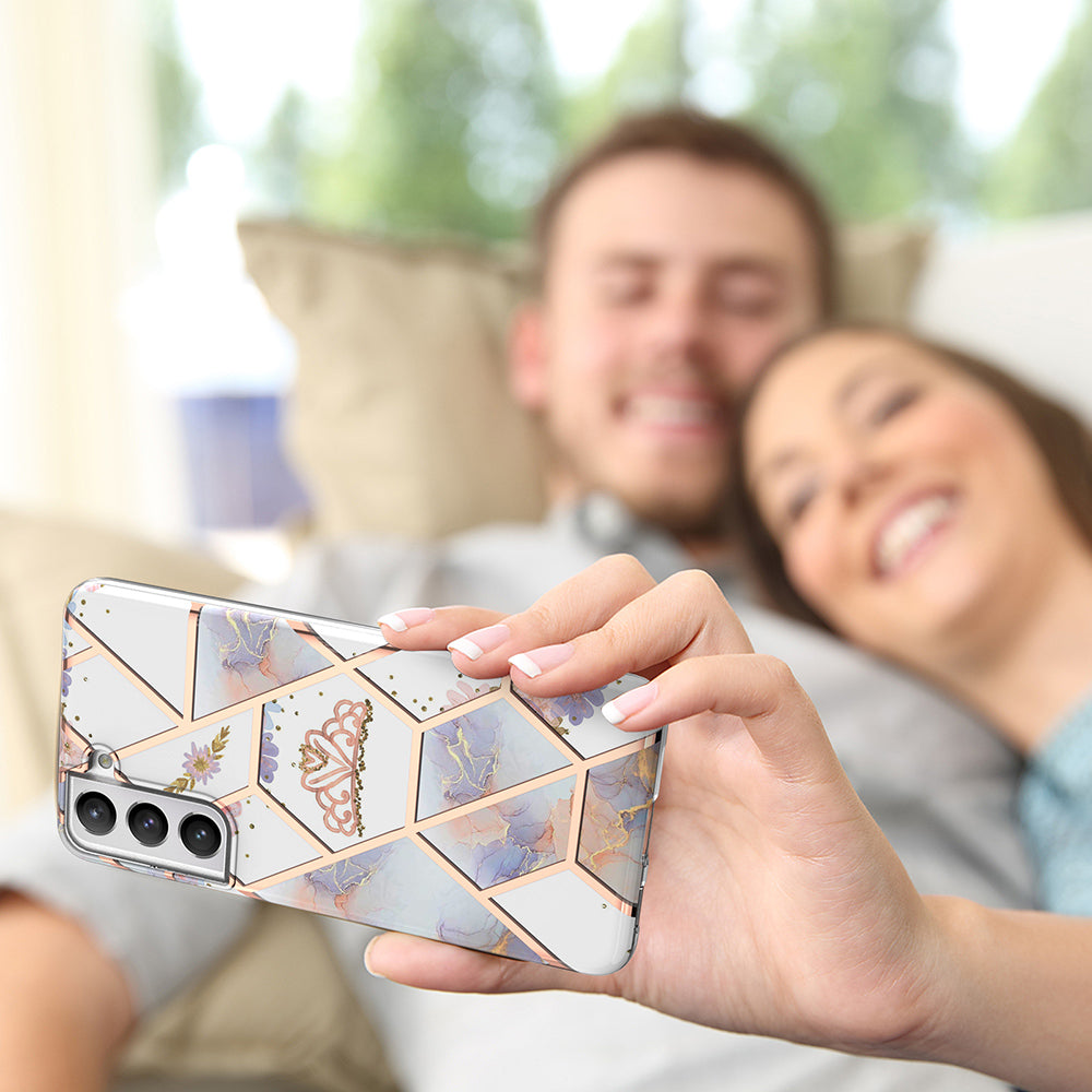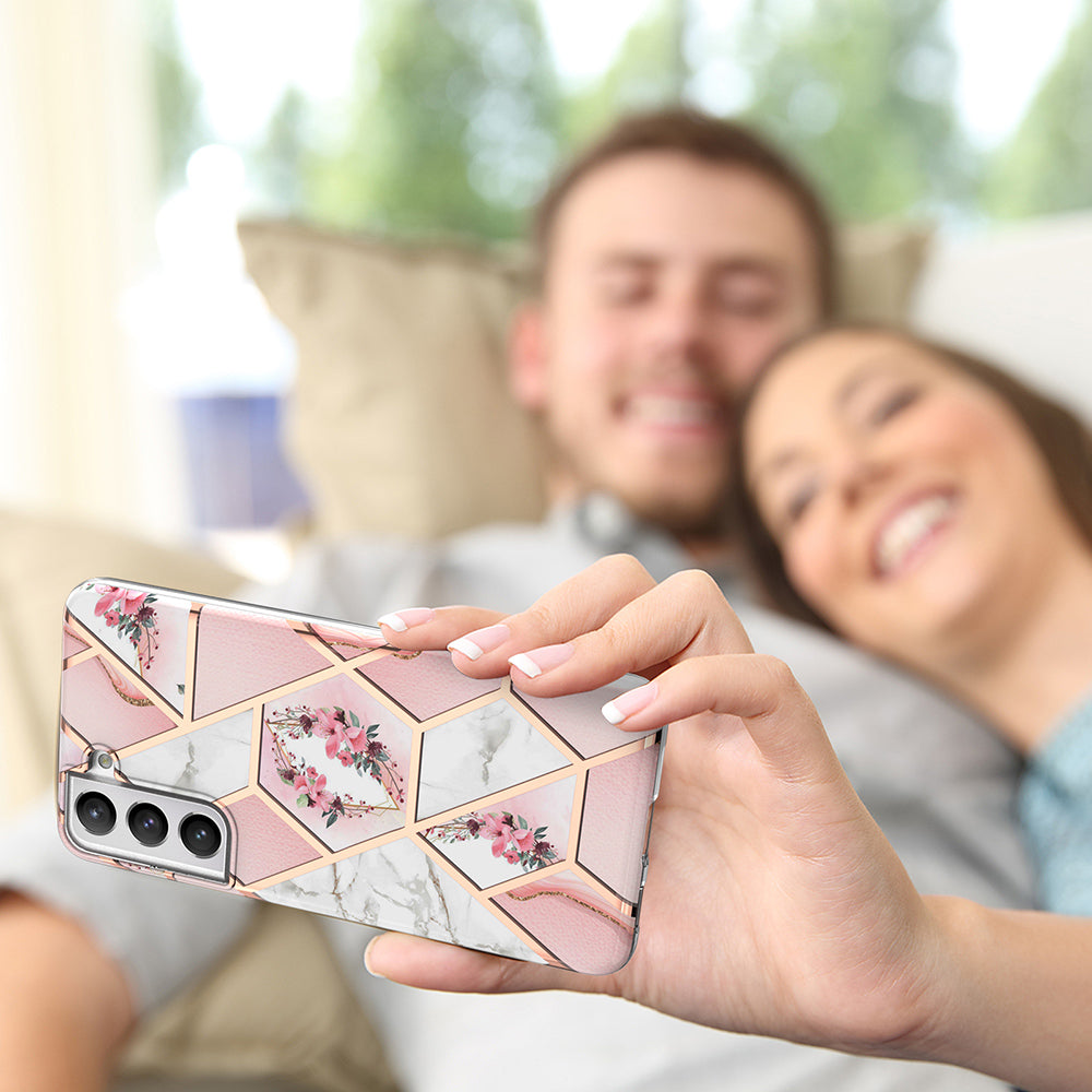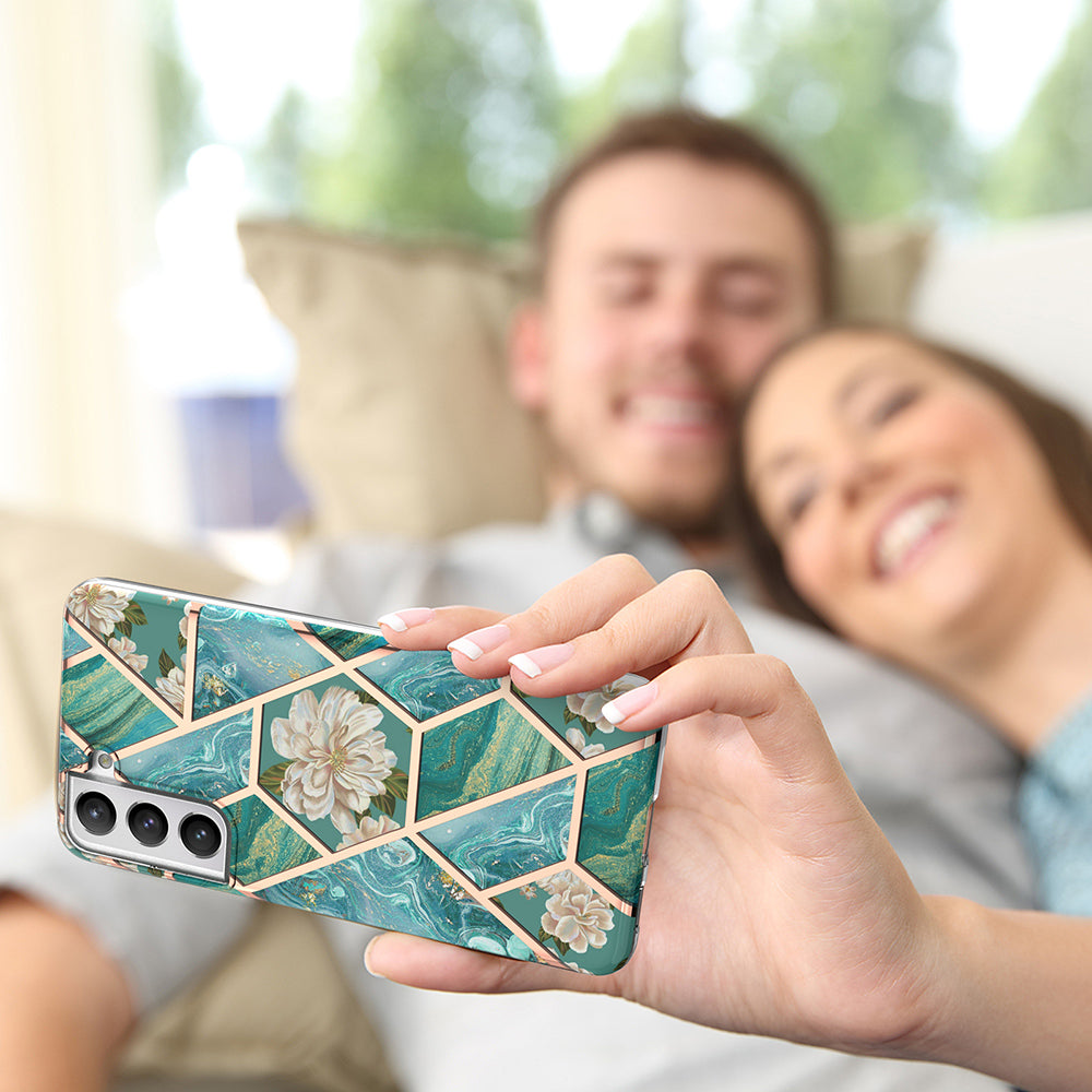 2.0mm IMD IML Electroplating Marble Phone Case Flower Pattern Shell for Samsung Galaxy S21 5G/4G