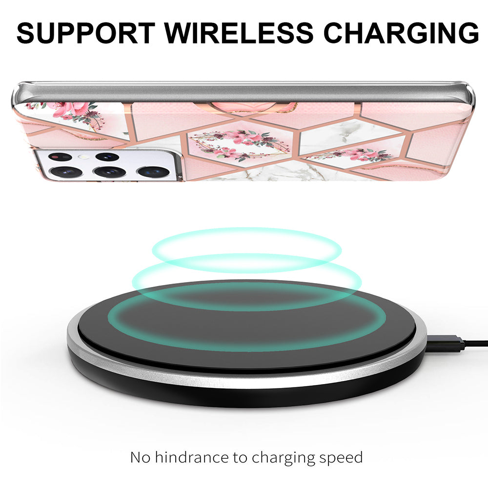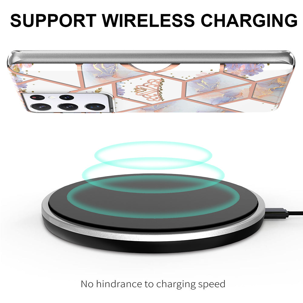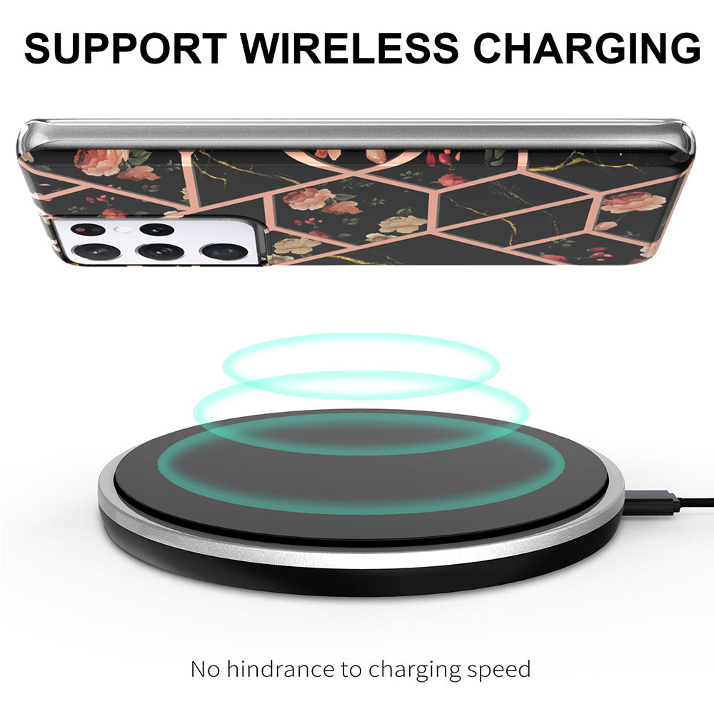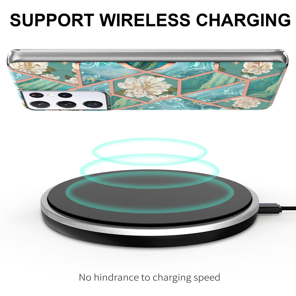 2.0mm IMD IML Electroplating Marble TPU Phone Back Case with Flower Pattern for Samsung Galaxy S21 Ultra 5G