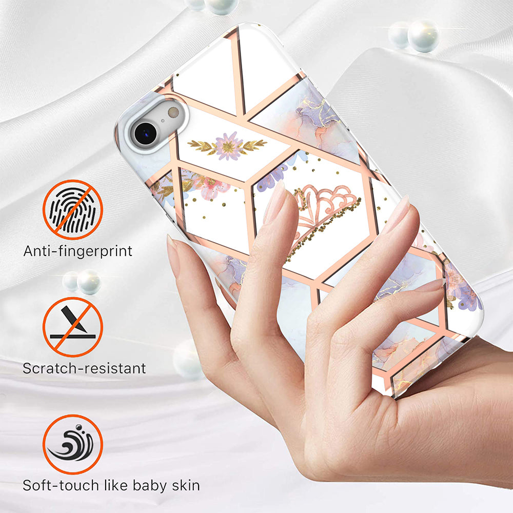 2.0mm IMD IML Marble Flower Pattern Electroplating Phone Case for iPhone 7 4.7 inch/8 4.7 inch/SE (2020)/SE (2022)