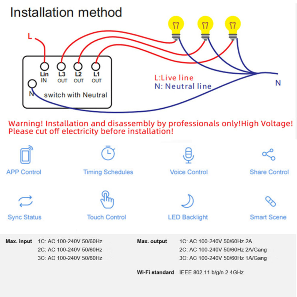 - Wiring method: Neutral Wire, Fire Wire