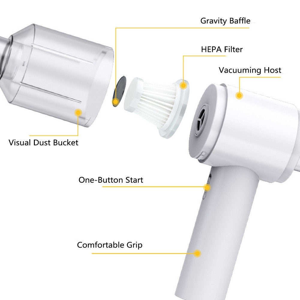 2 in 1 Car Cordless Vacuum Cleaner Air Blower 2000PA Home Office Mini Handheld Dust Remover Deduster