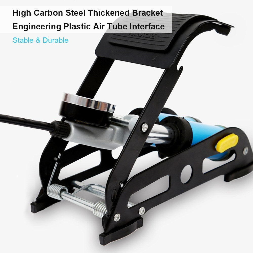 2-in-1 Folding Air Pump with Ordinary Barometer in High-Pressure Pump with Dual Cylinder Portable Inflatable Cylinder Inflation Pump with Pedal for Automobiles Bicycles Rubber Boats