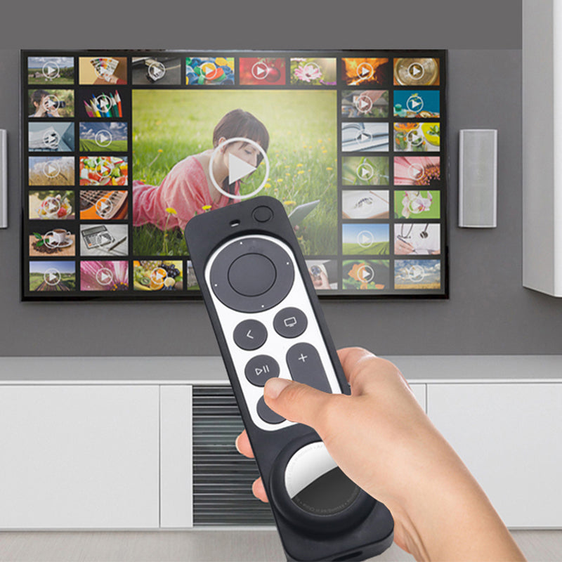 2-in-1 Remote Controller Bluetooth Tracker Soft Silicone Protective Sleeve Cover for Apple TV HD/4K AirTag