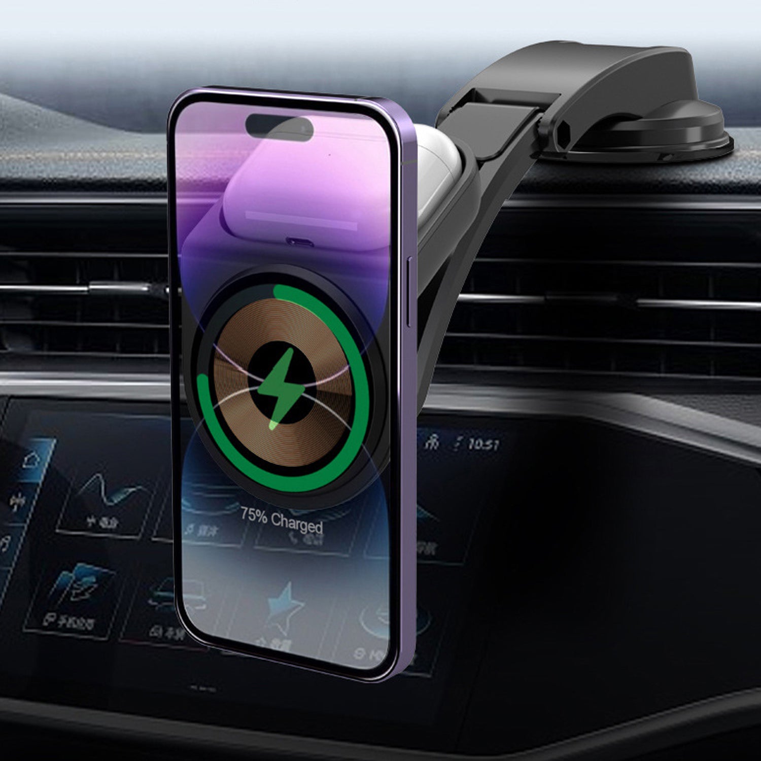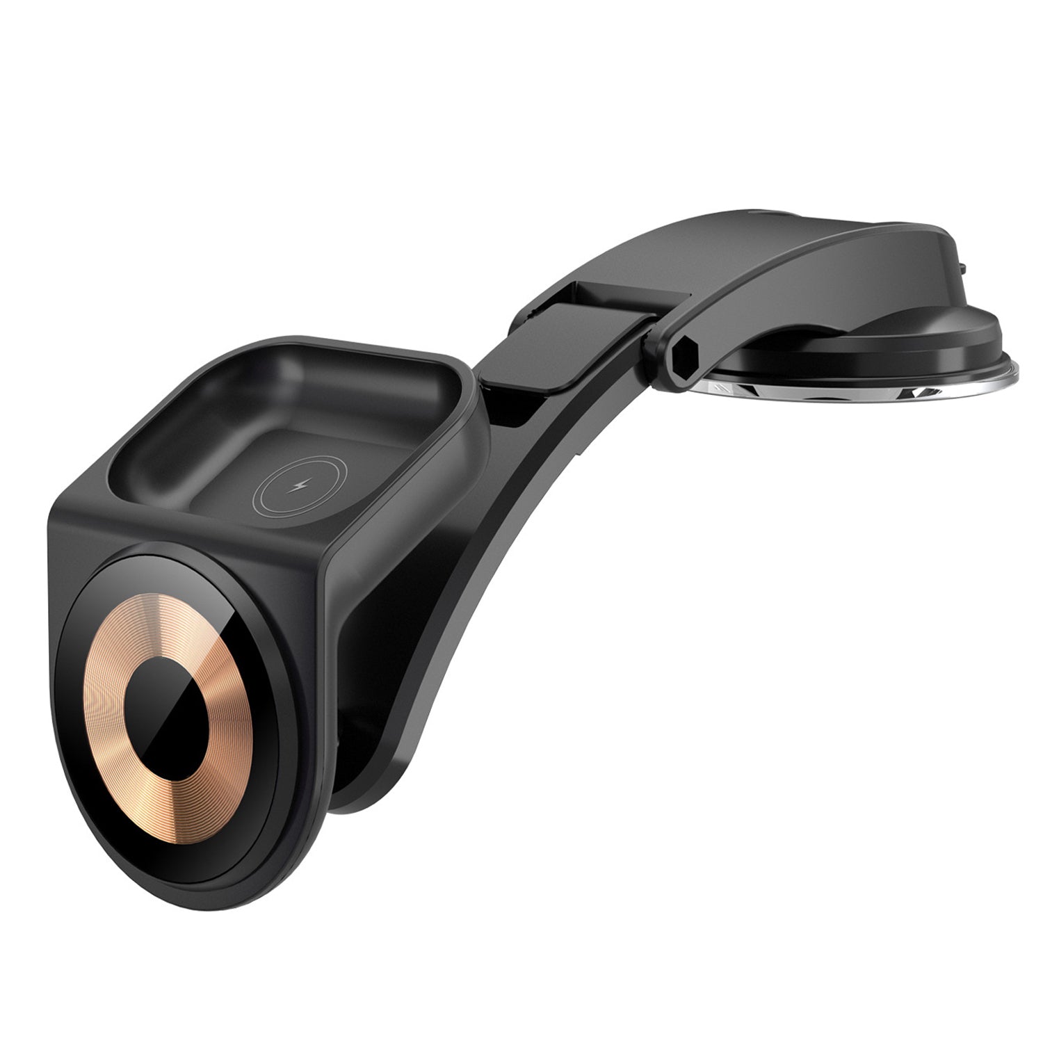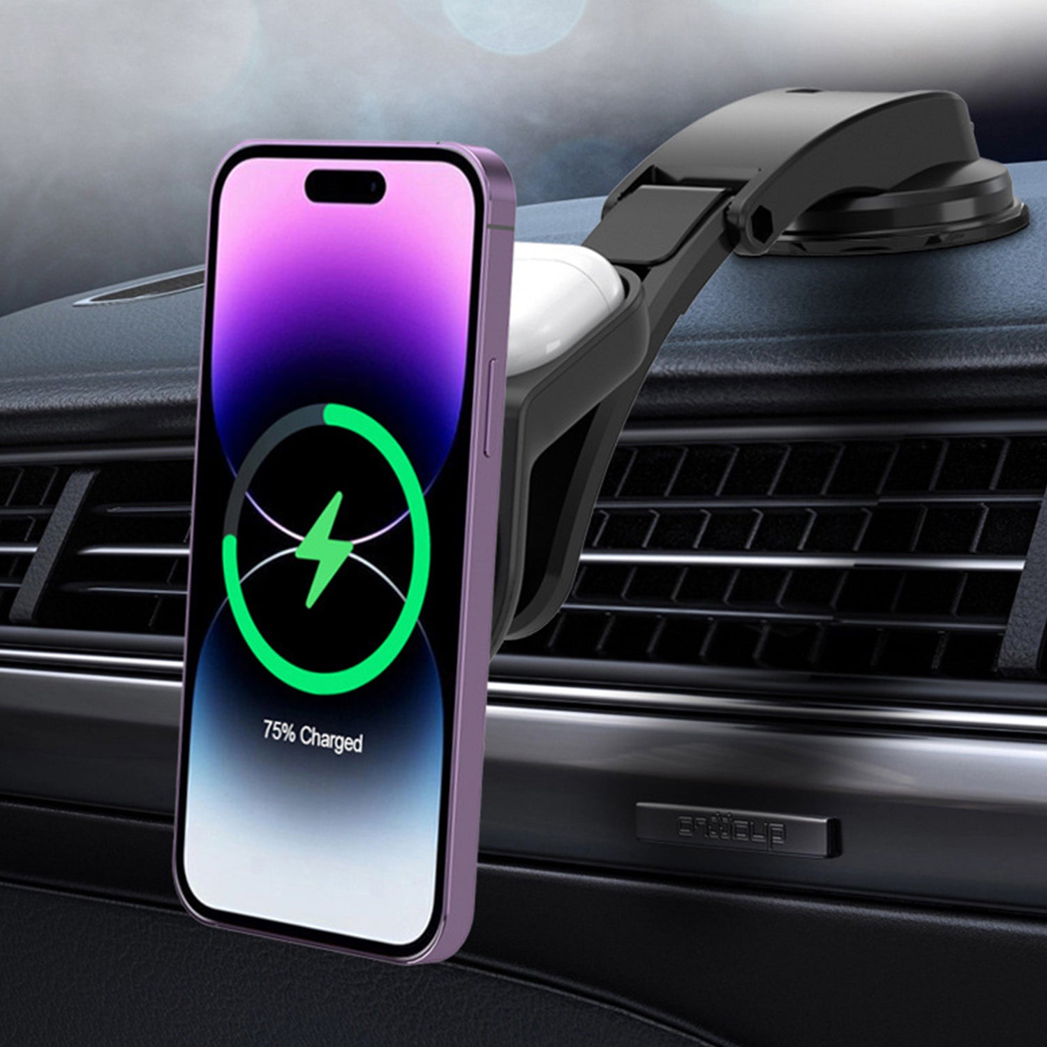 2 in 1 Suction Dashboard Mount 15W Max Magnetic Wireless Car Charger for Mobile Phone / Earphones