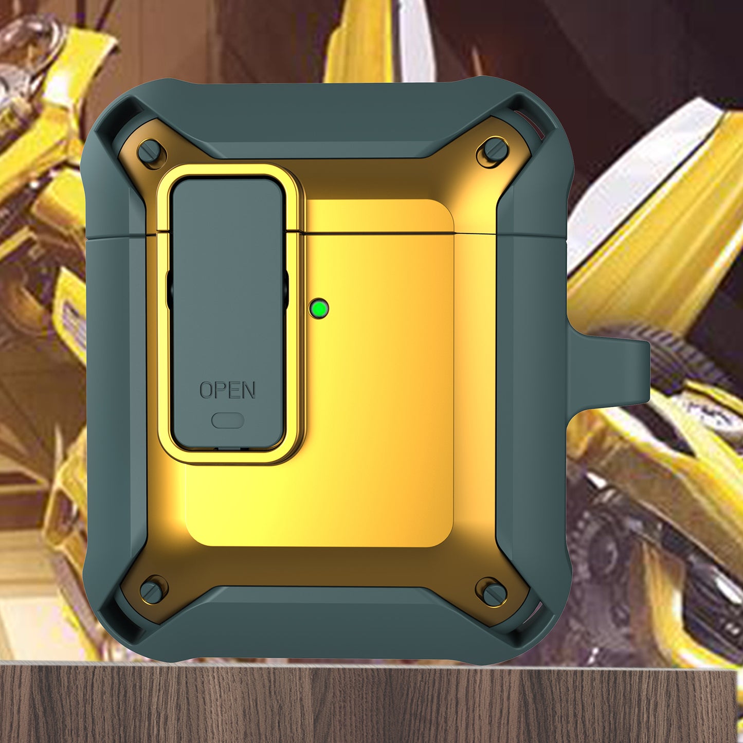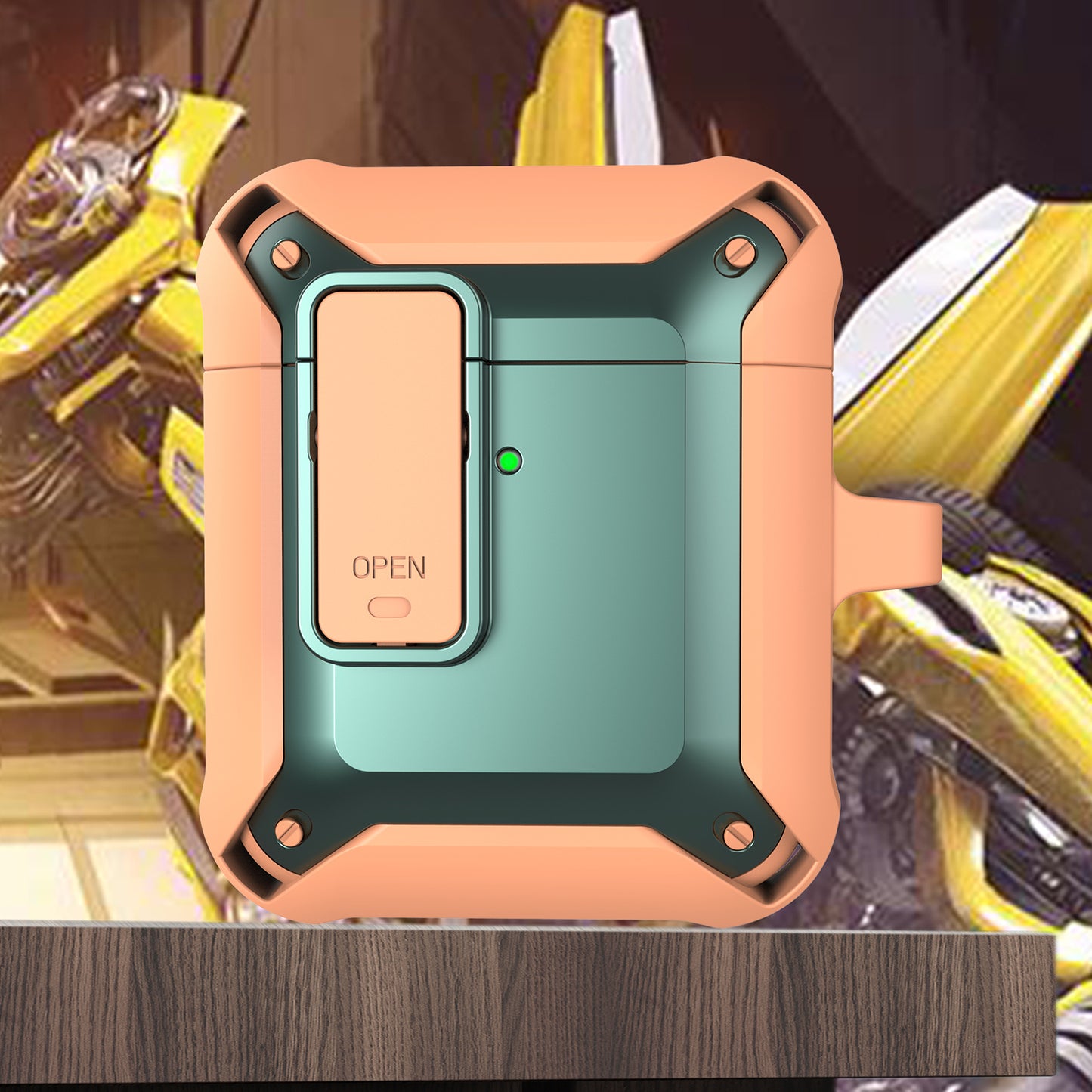 2 in 1 TPU + PC Anti-drop Earbuds Case Protector Shock-resistant Portable Earphone Charging Case Cover with Lock/Buckle for AirPods 1/2
