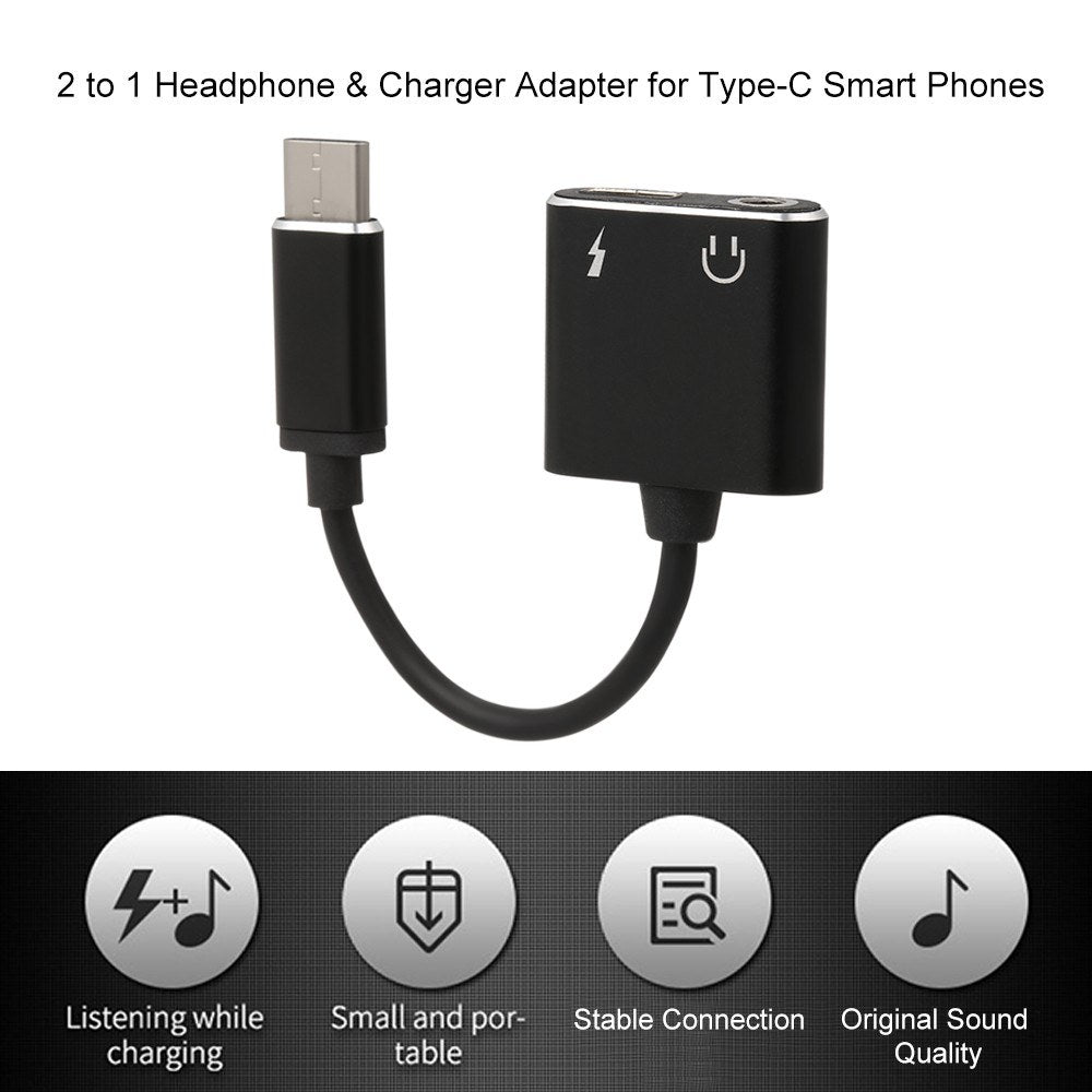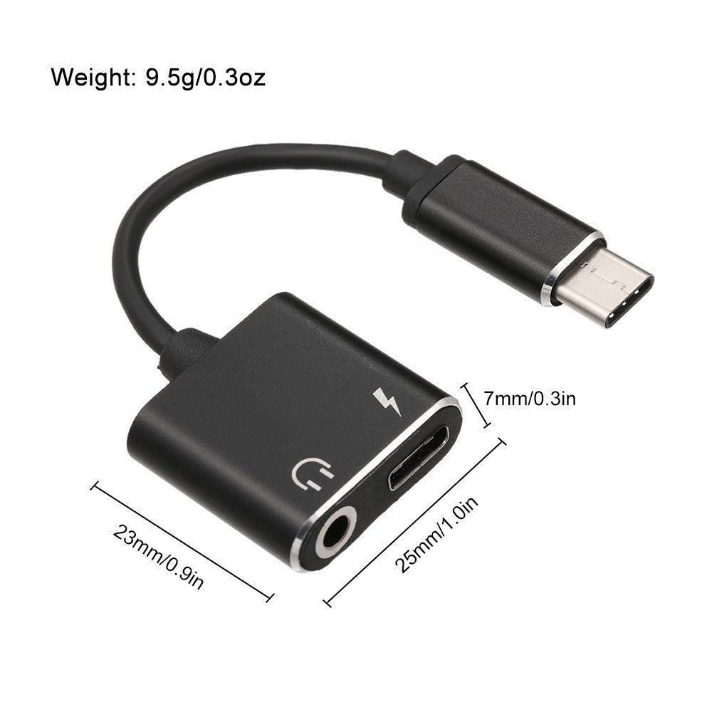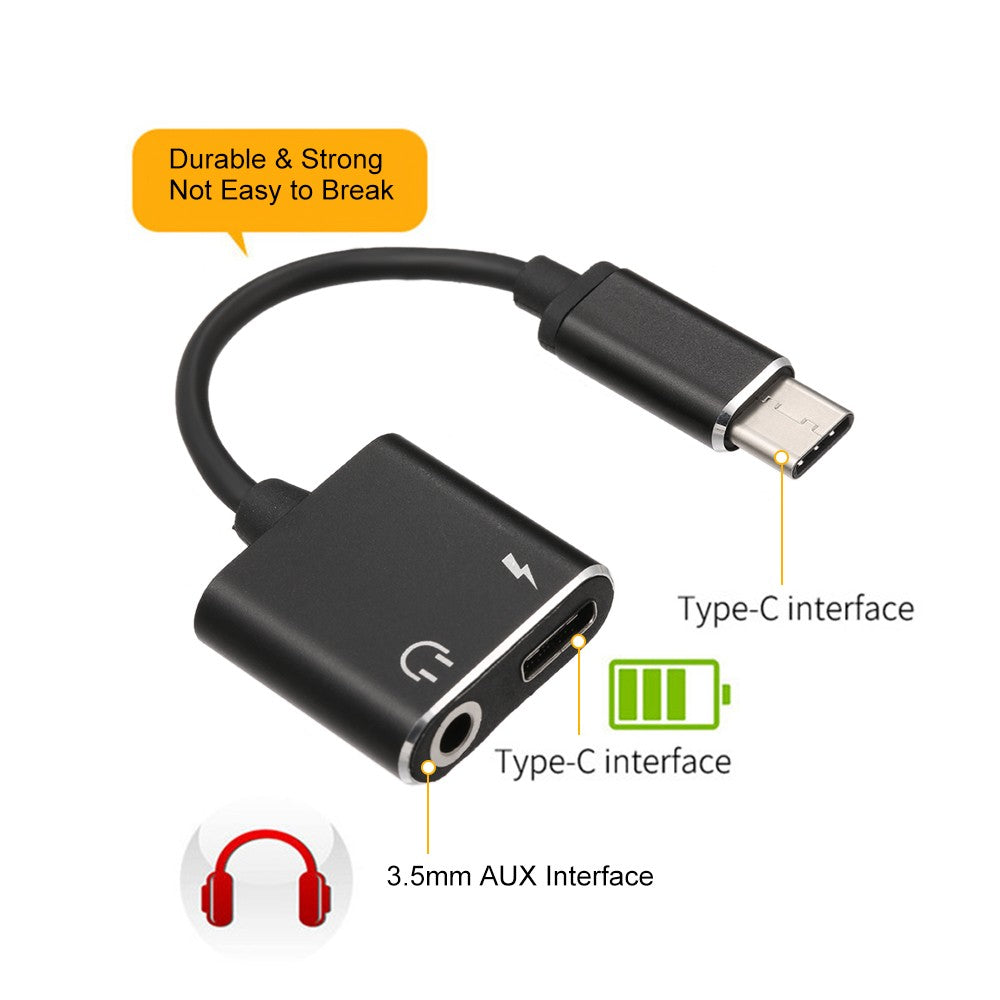 2 to 1 Type-C to 3.5mm AUX Adapter Headphone Charger Plug & Play for Samsung Huawei Xiaomi LG