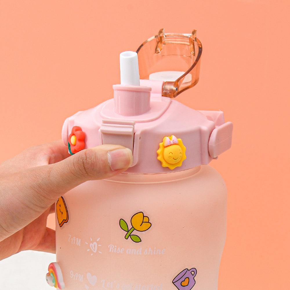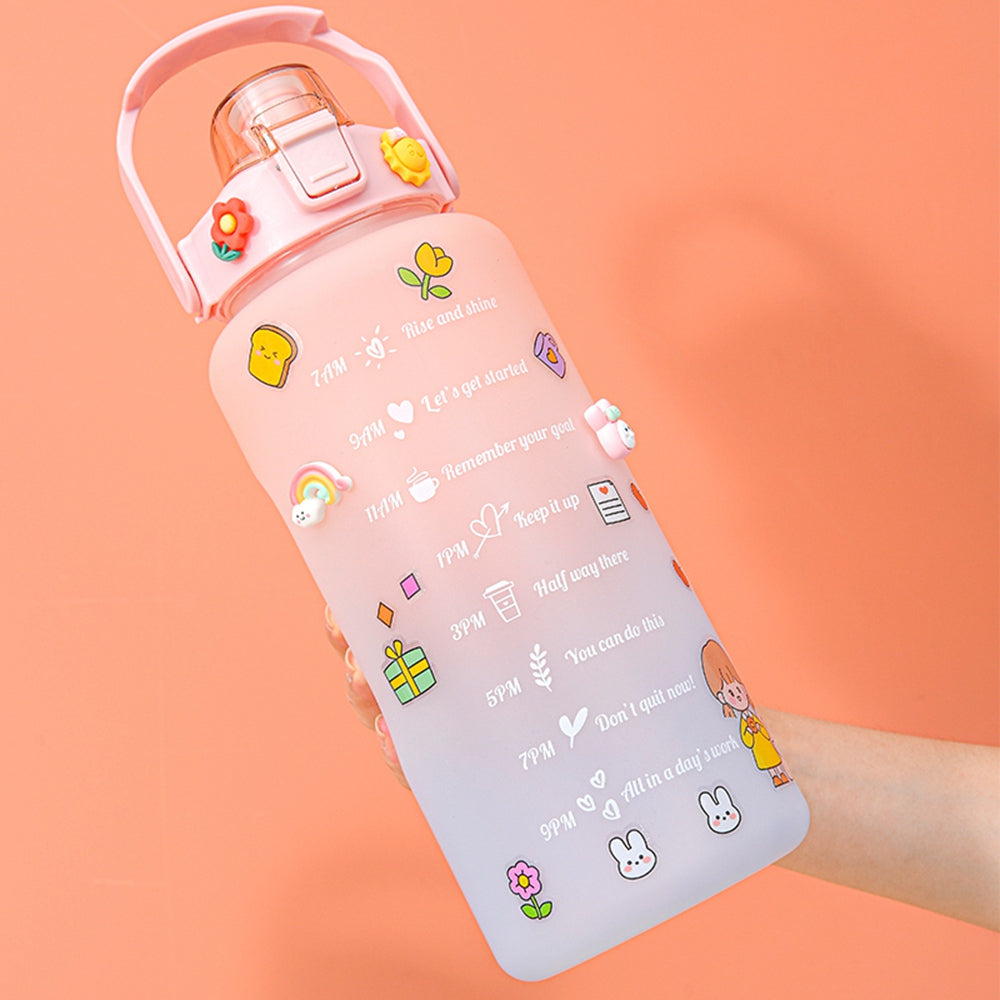 2000ml For Home Office Gym Motivational Time Scale Reminder Water Bottle Gradient Drink Kettle with Straw (No FDA Certificate, BPA-free)