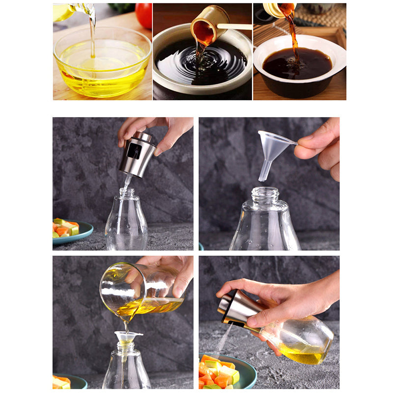 200ml Oil Pump Spray Bottle Stainless Steel Glass Seasoning Bottle Spice Jar