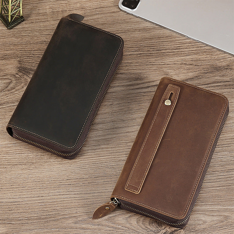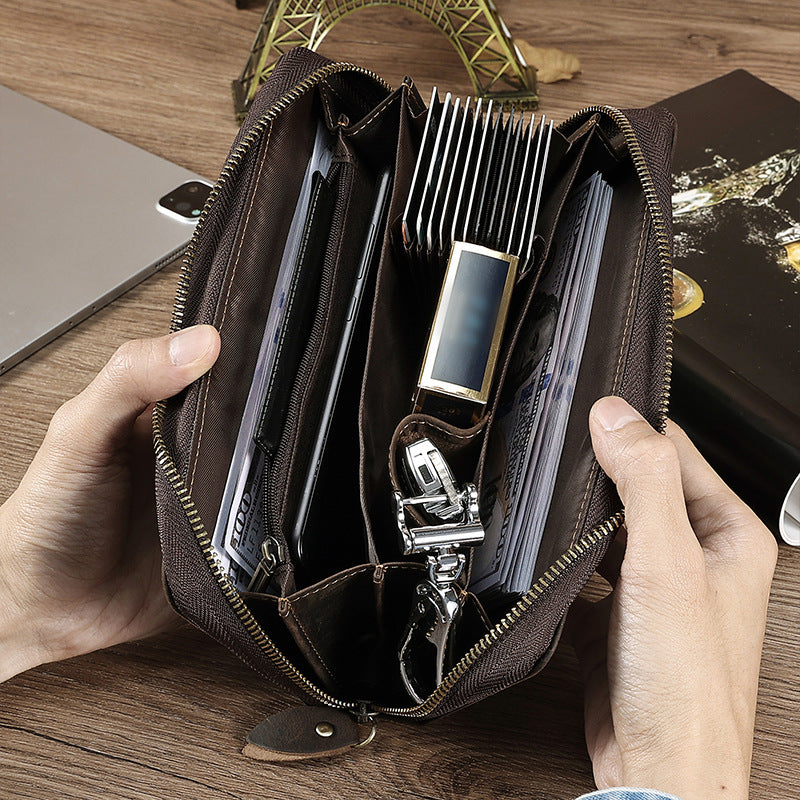 2061 Top Layer Cowhide Leather Long Wallet for Men RFID Blocking Organ Card Holder Clutch Zipper Coin Purse