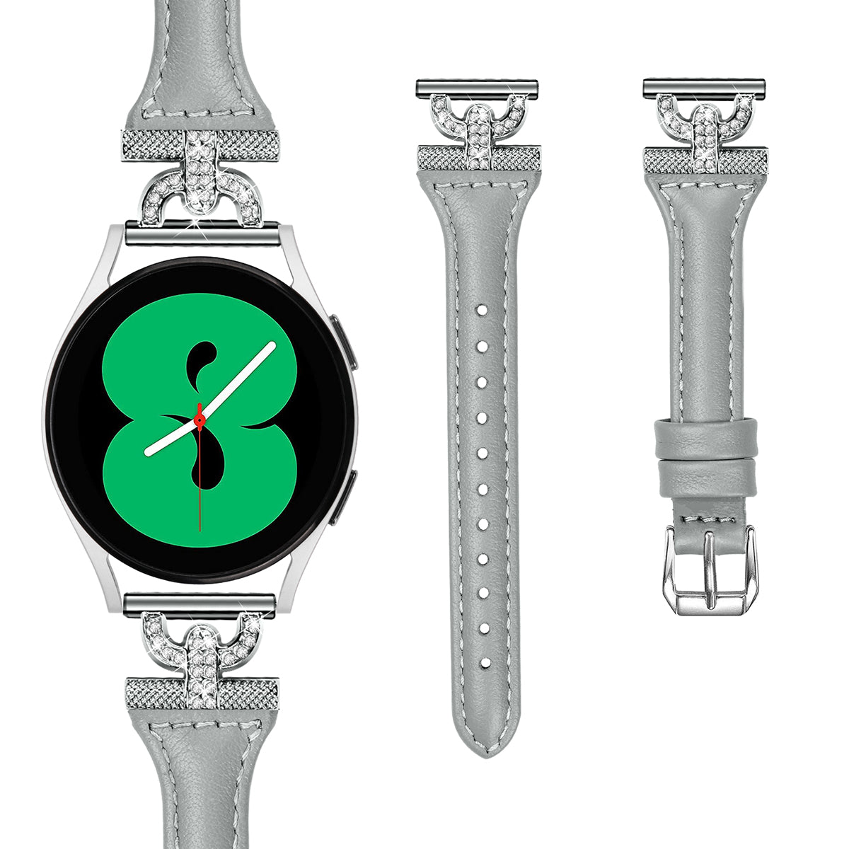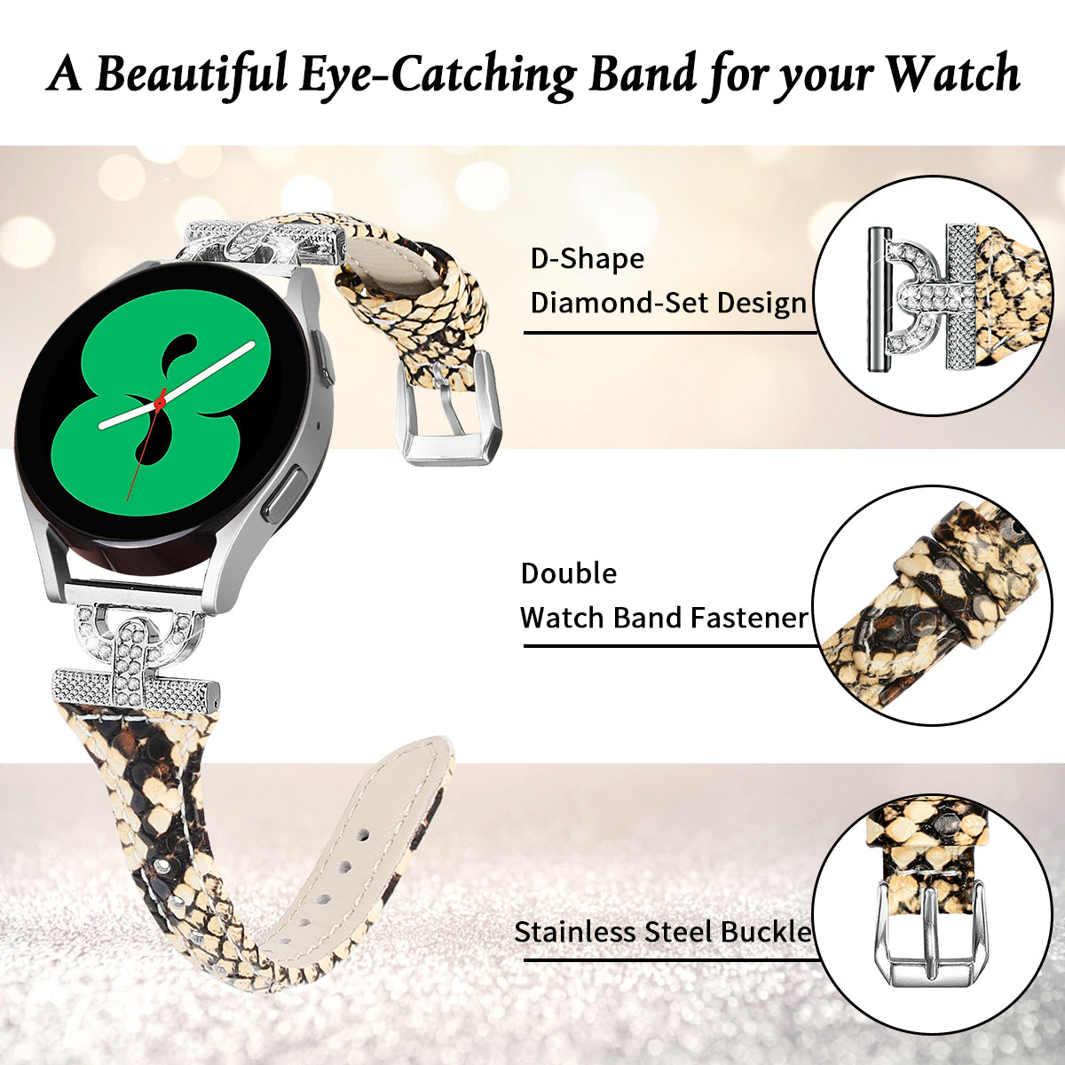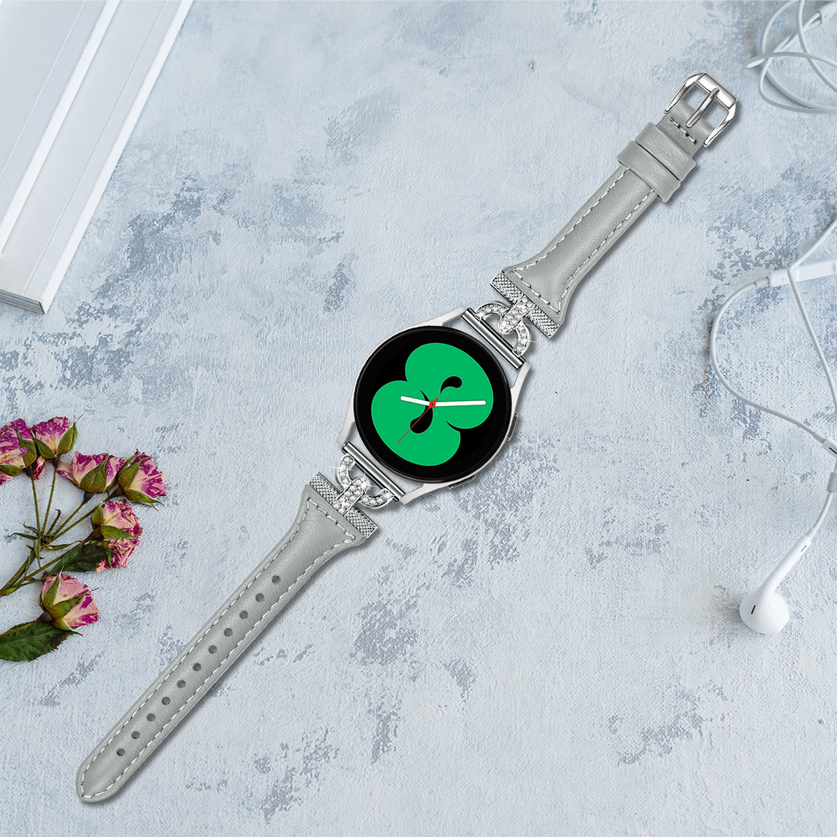 20mm Genuine Cow Leather Band for Samsung Galaxy Watch6 40mm 44mm / Watch6 Classic 43mm 47mm / Watch 5 40mm 44mm / Watch4 40mm 44mm , Rhinestone Decor Watch Strap with Silver Buckle