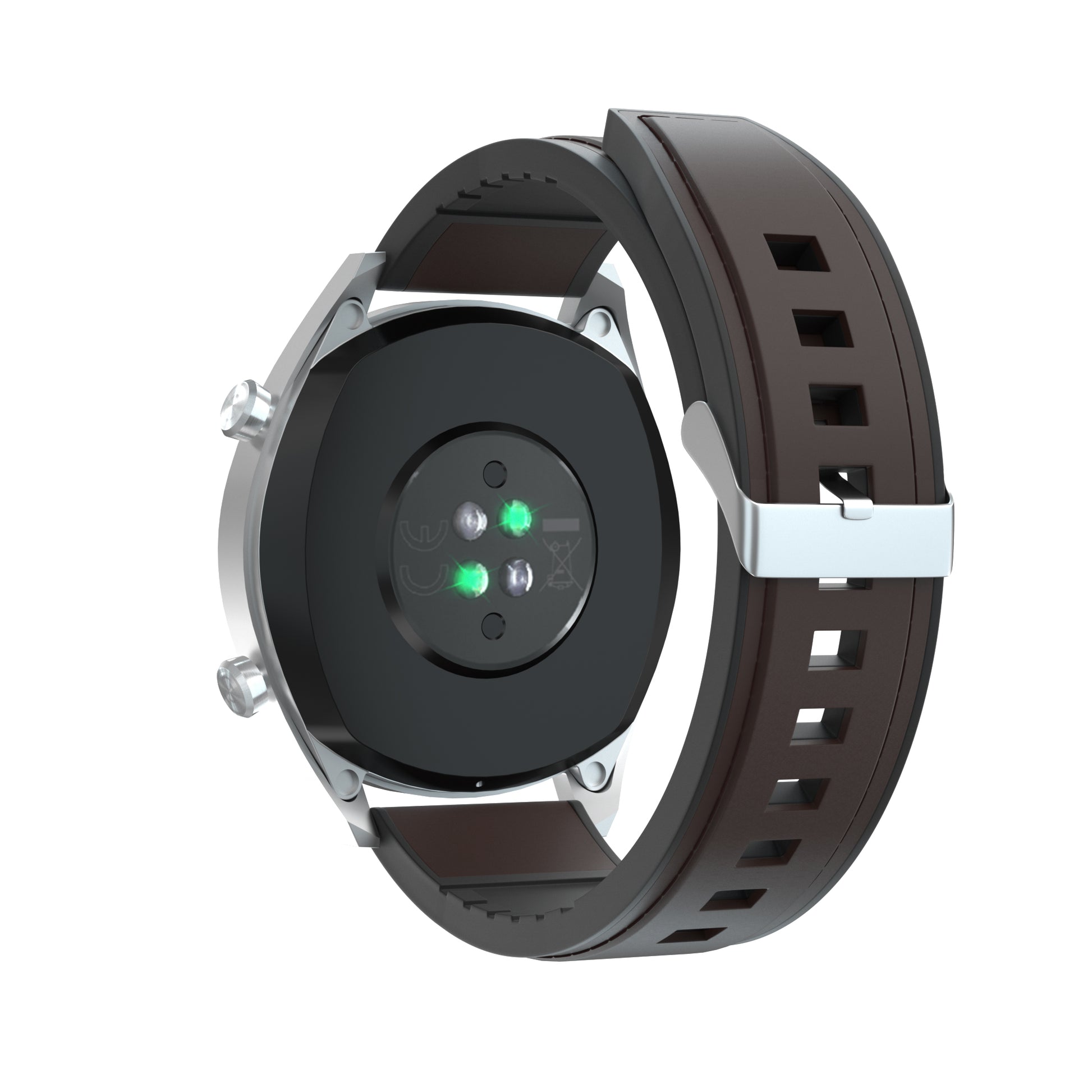 20mm Genuine Leather + Silicone Hybrid Watchband Strap Silver Buckle for Huawei Watch GT 2 42mm