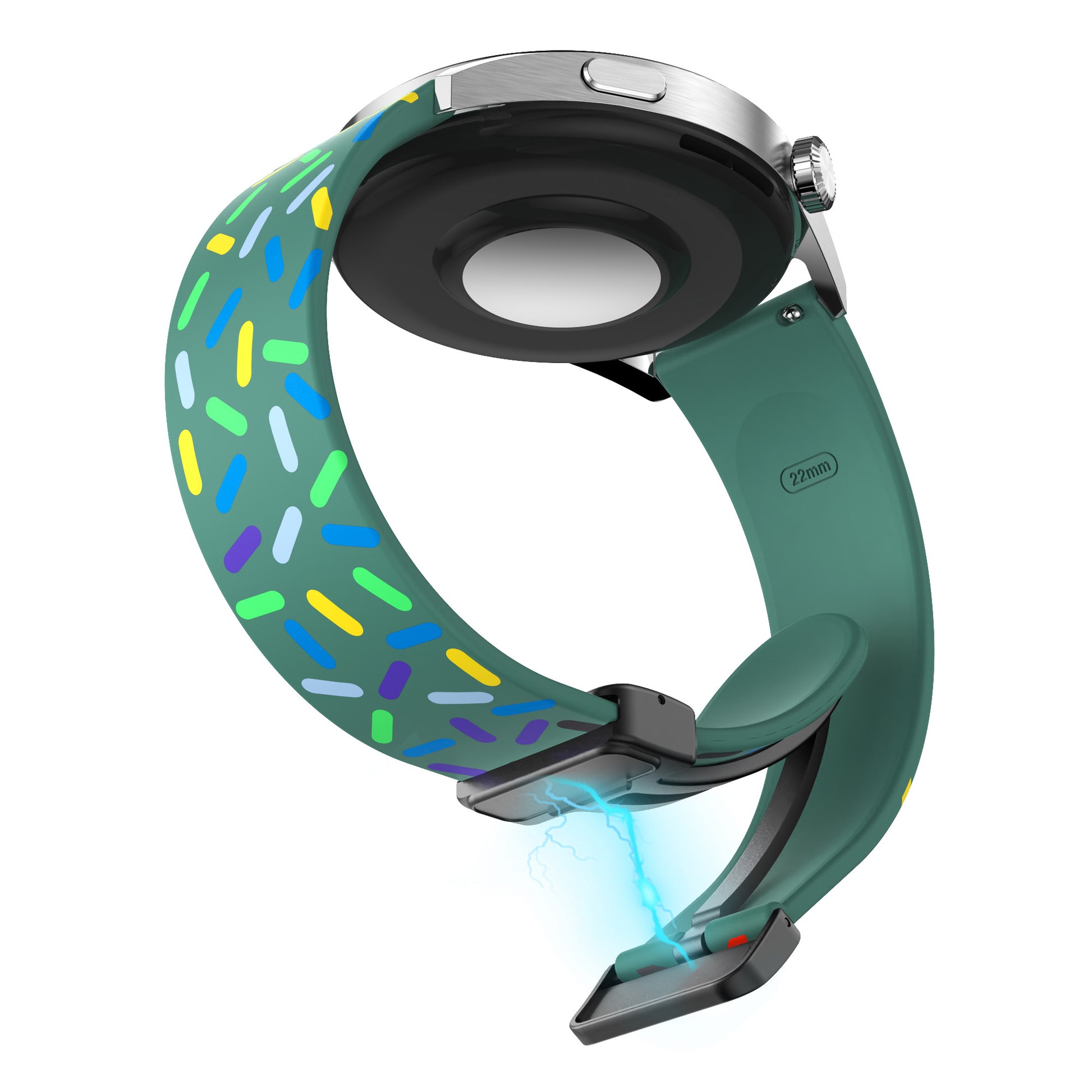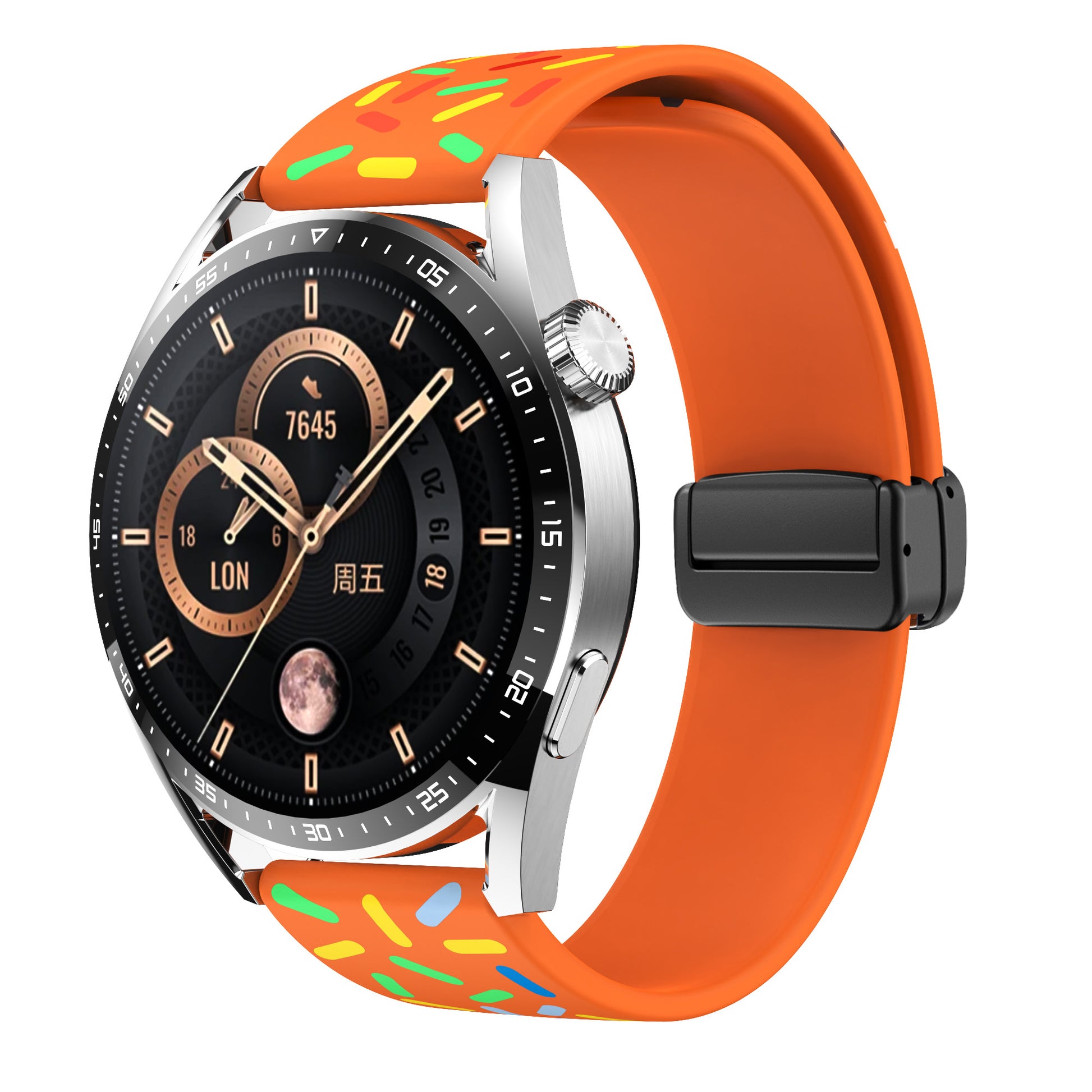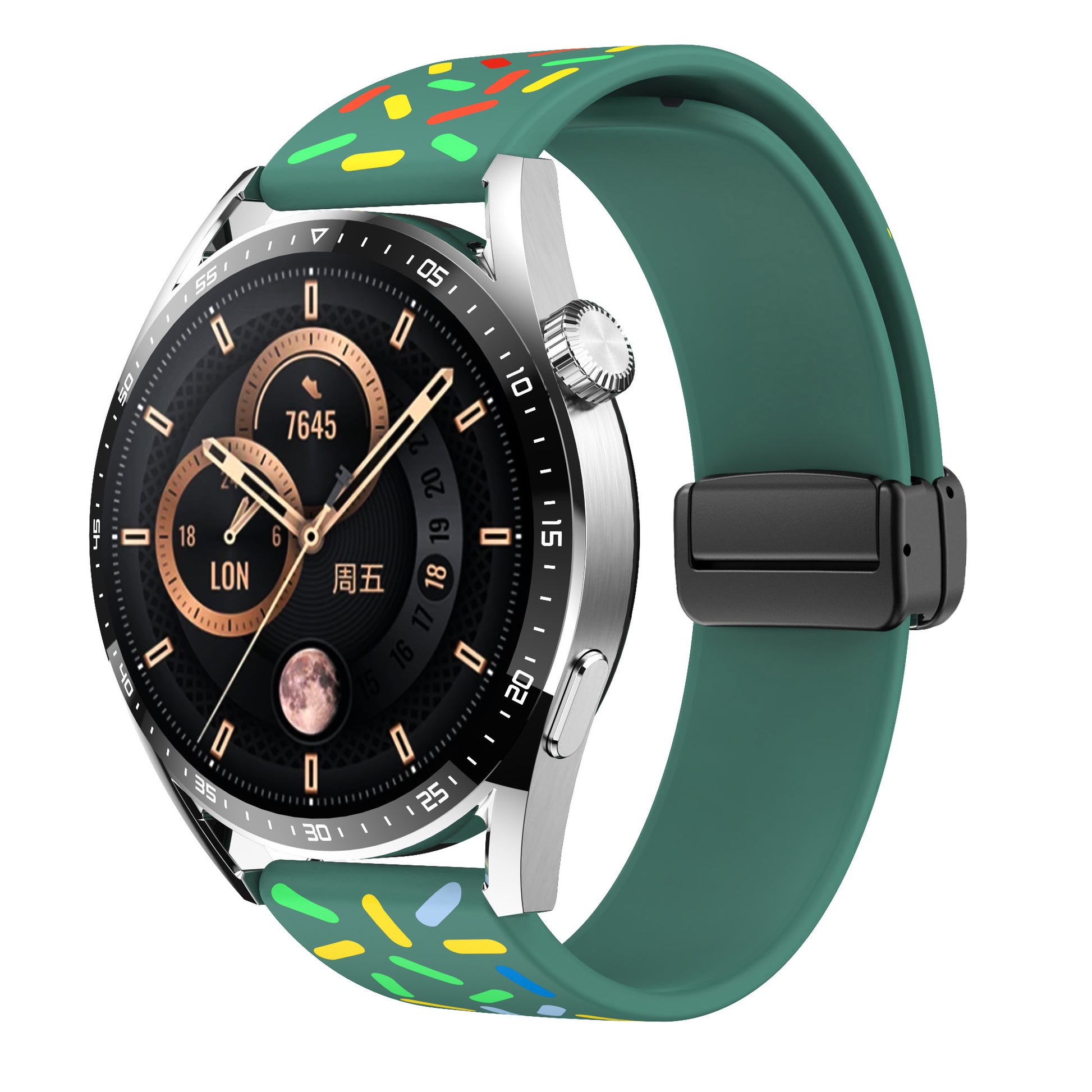 20mm Pattern Watch Bands for Samsung Galaxy Watch6 / Watch6 Classic / Watch 5 / Watch 5 Pro / Watch4 / Watch4 Classic , Silicone Strap with Black Magnetic Folding Buckle