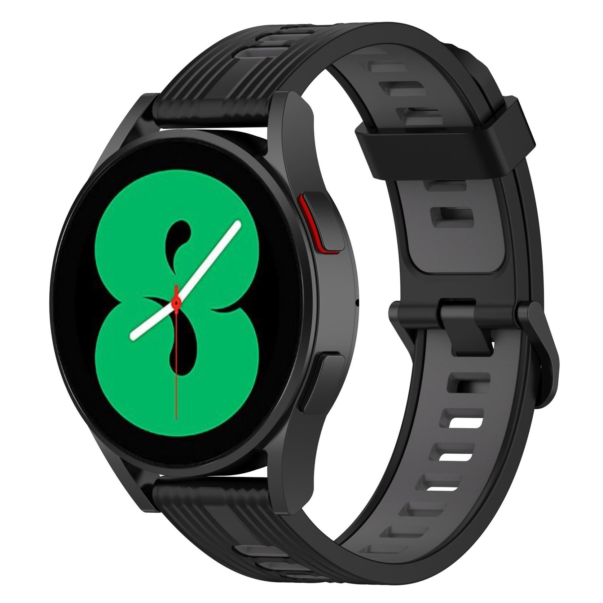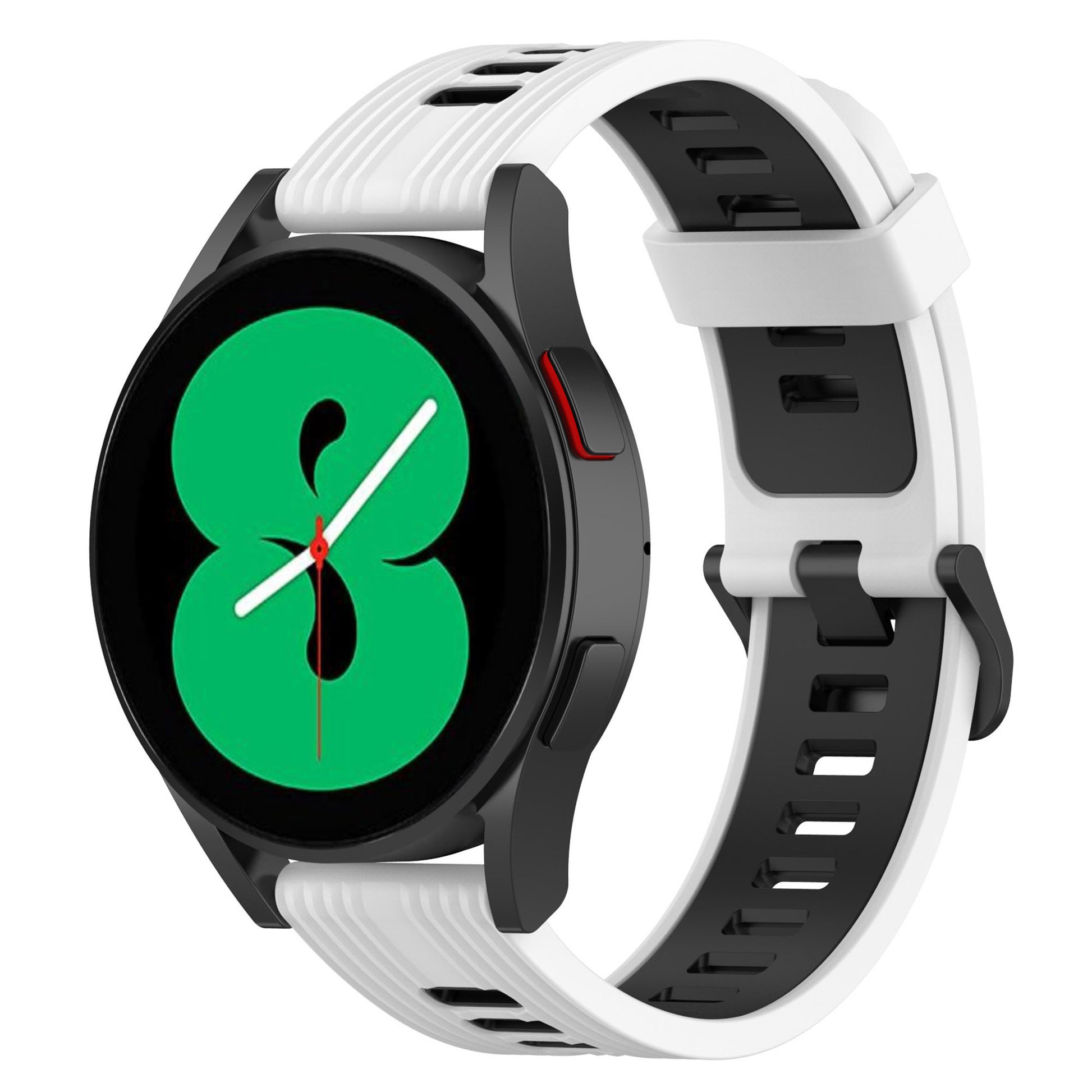 20mm Silicone Stripe Bi-color Watch Strap Soft Wristband with Buckle for Huawei Watch GT2 42mm/Samsung Galaxy Watch4 Classic 42mm/46mm/Watch4 40mm/44mm