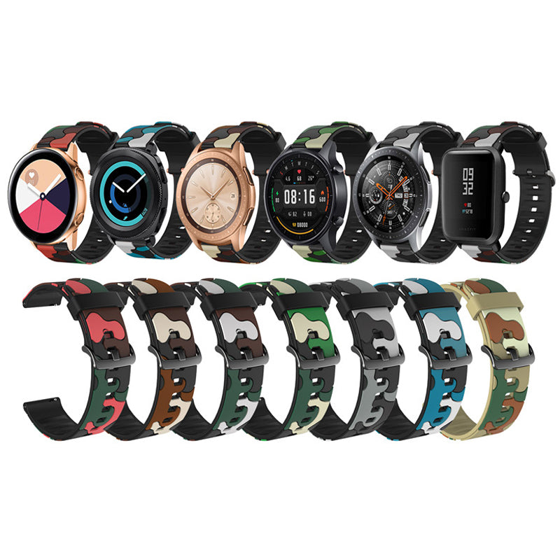 20MM Stylish Camouflage Pattern Flexible Silicone Watch Strap for Samsung Galaxy Watch4 Classic 46mm 42mm/Watch4 44mm 40mm/Polar Ignite