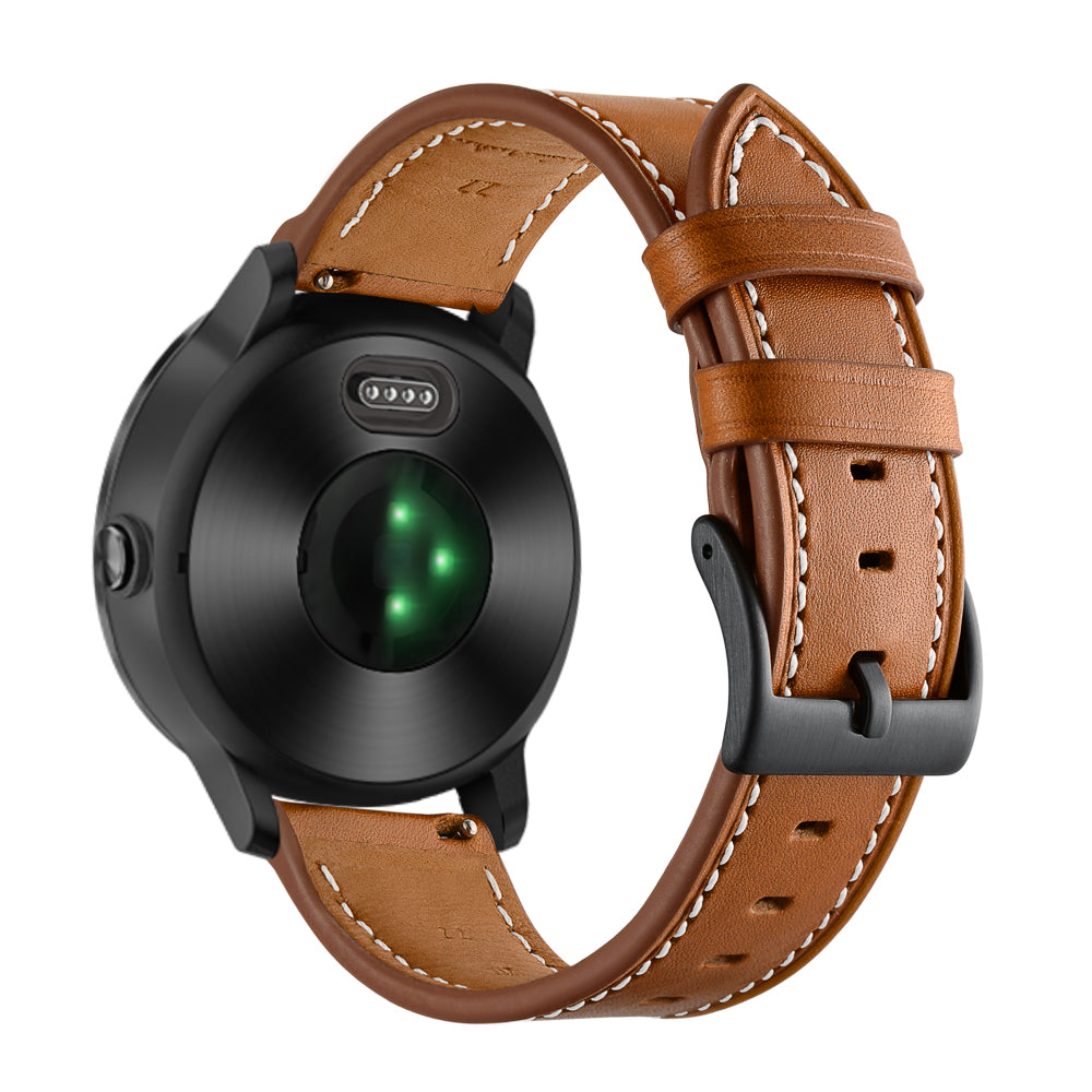 20mm Top-layer Genuine Leather Watch Strap Replacement for Garmin Vivoactive 3/Vivomove HR