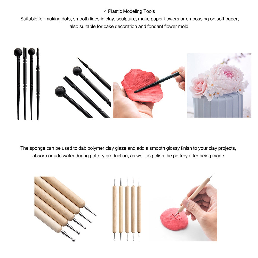 21031324 24PCS Pottery Tools Set Stone Plastic Clay Carving Knives Toys DIY Tools Dotting Pen