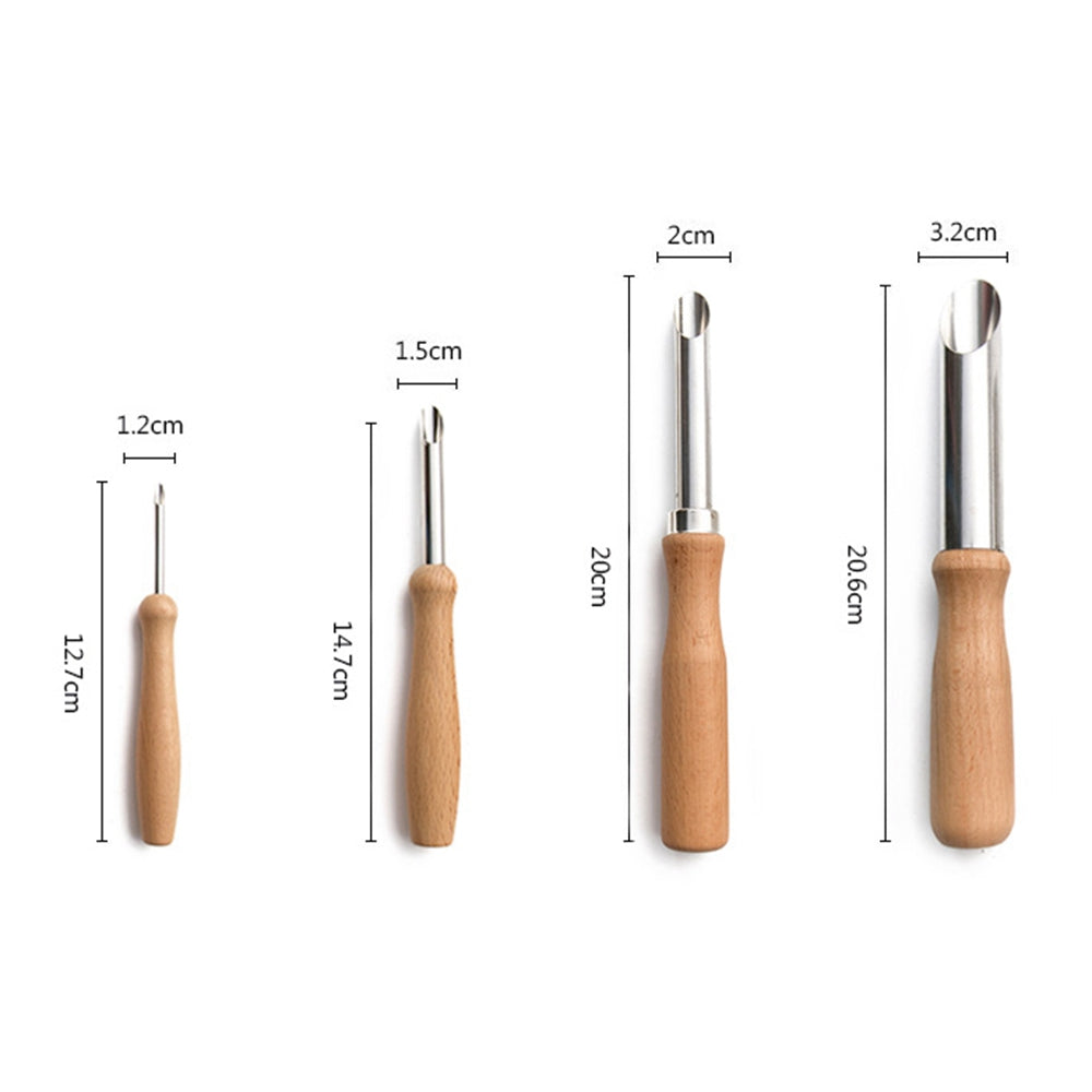 211904 4Pcs Wooden Handle Stainless Steel Circular Clay Hole Cutters for Pottery and Sculpture